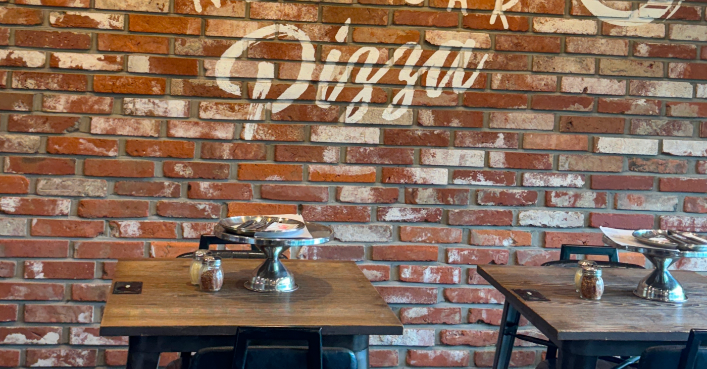 한쪽 벽은 빨간색 벽돌 인테리어로,