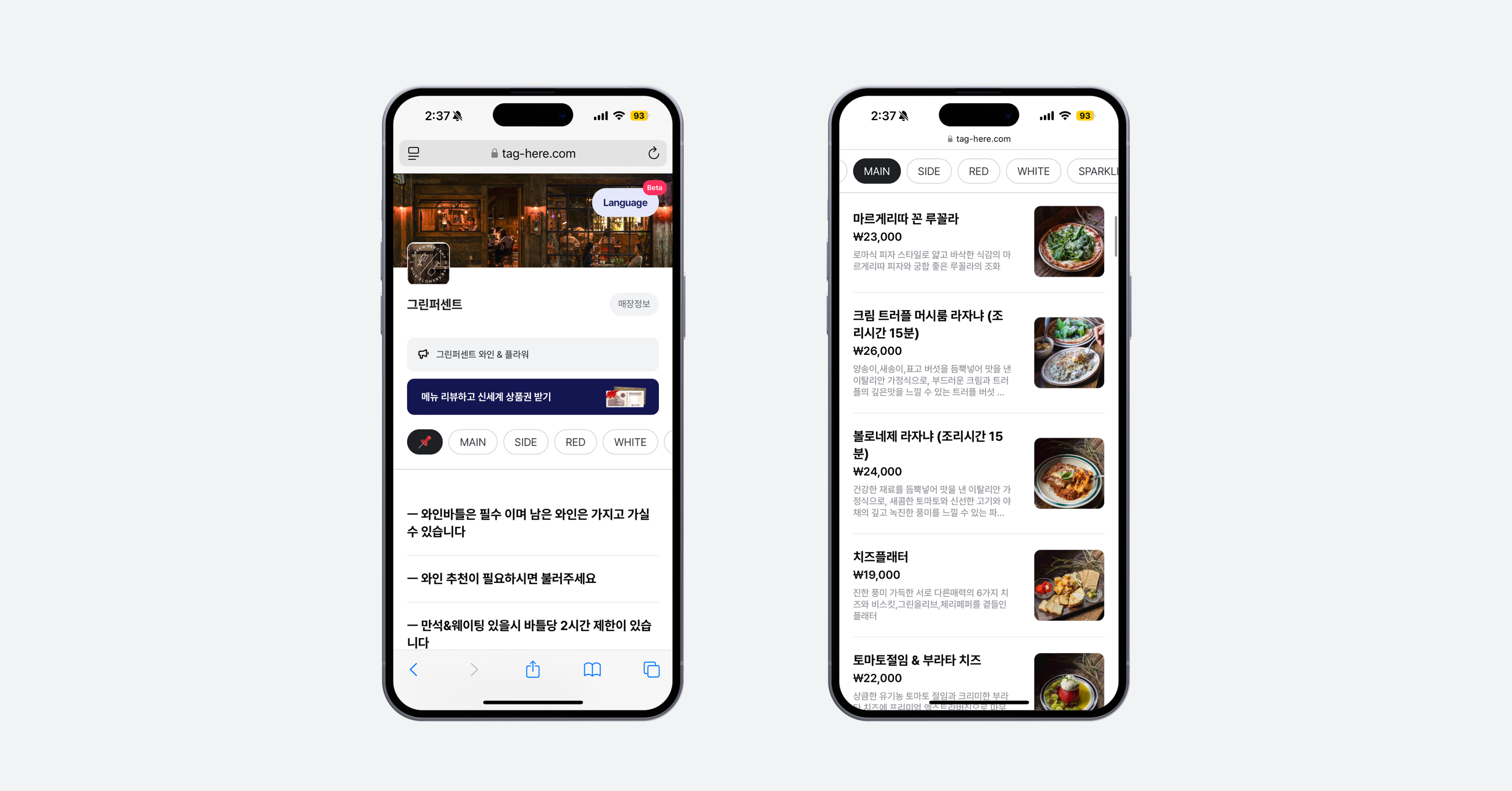 메뉴와 함께 와인을 꼭 주문해야 해요.