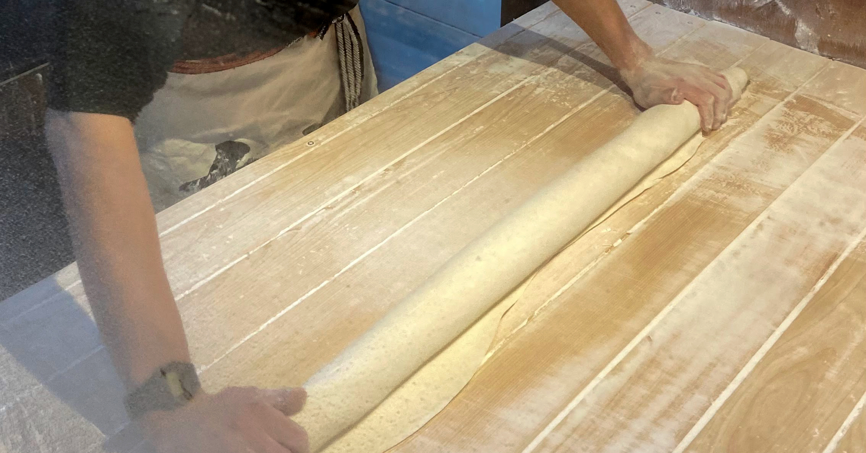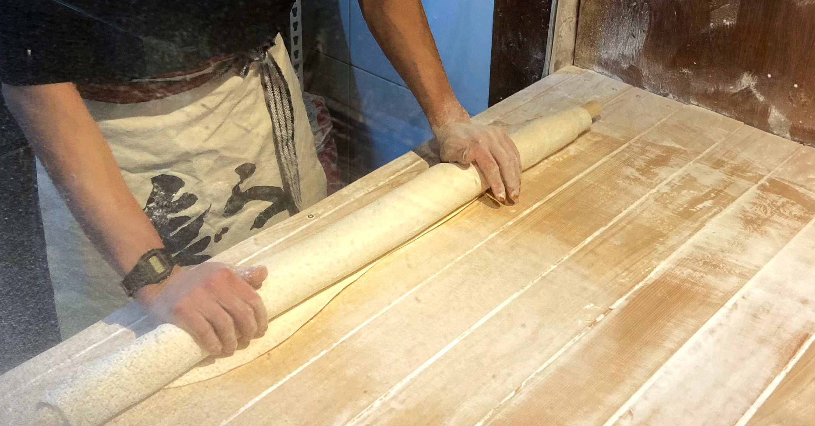 반죽을 직접 만들고 손으로 제면하고 있습니다.