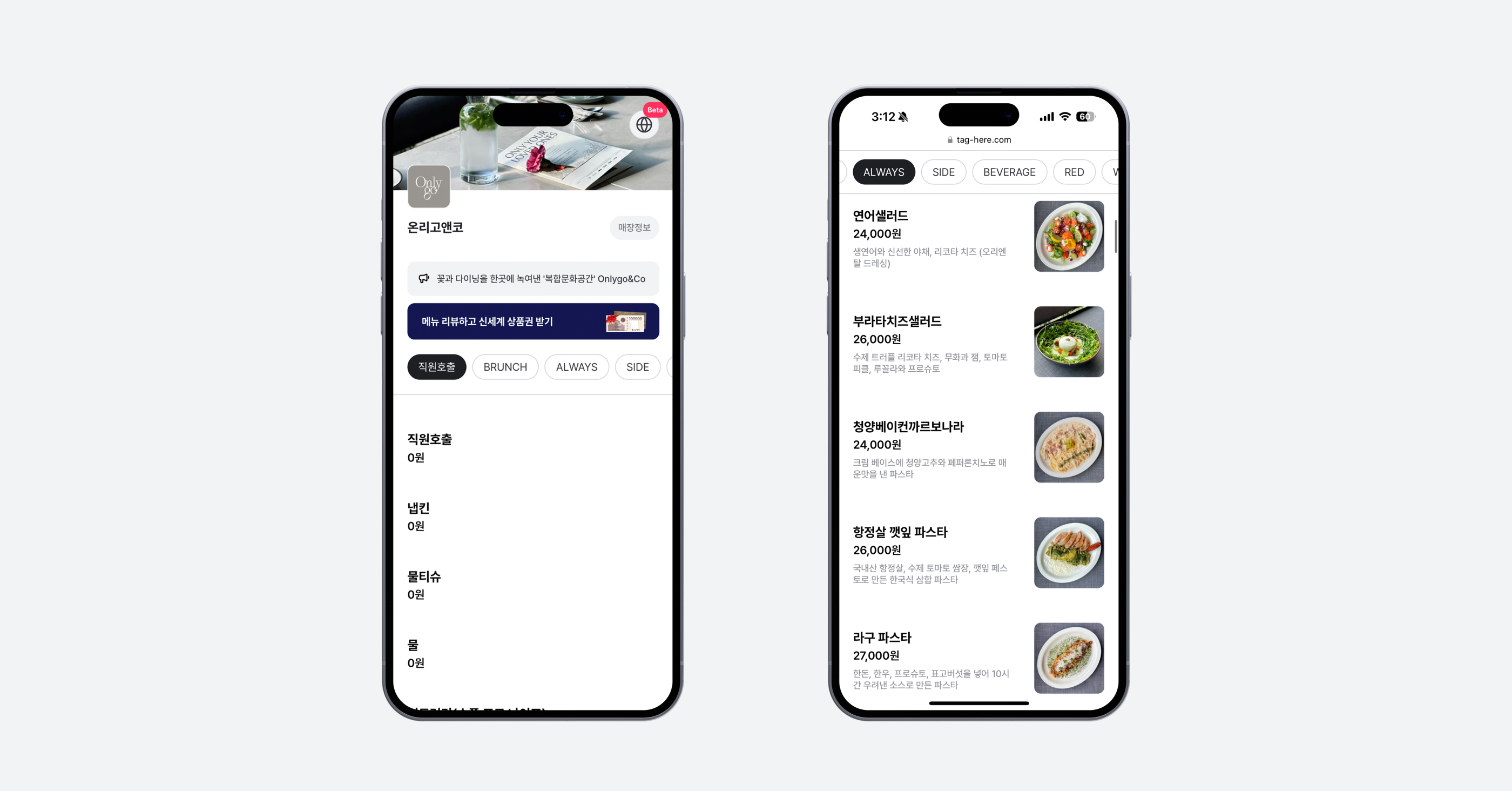 태그히어의 가장 큰 장점은 테이블 오더임에도