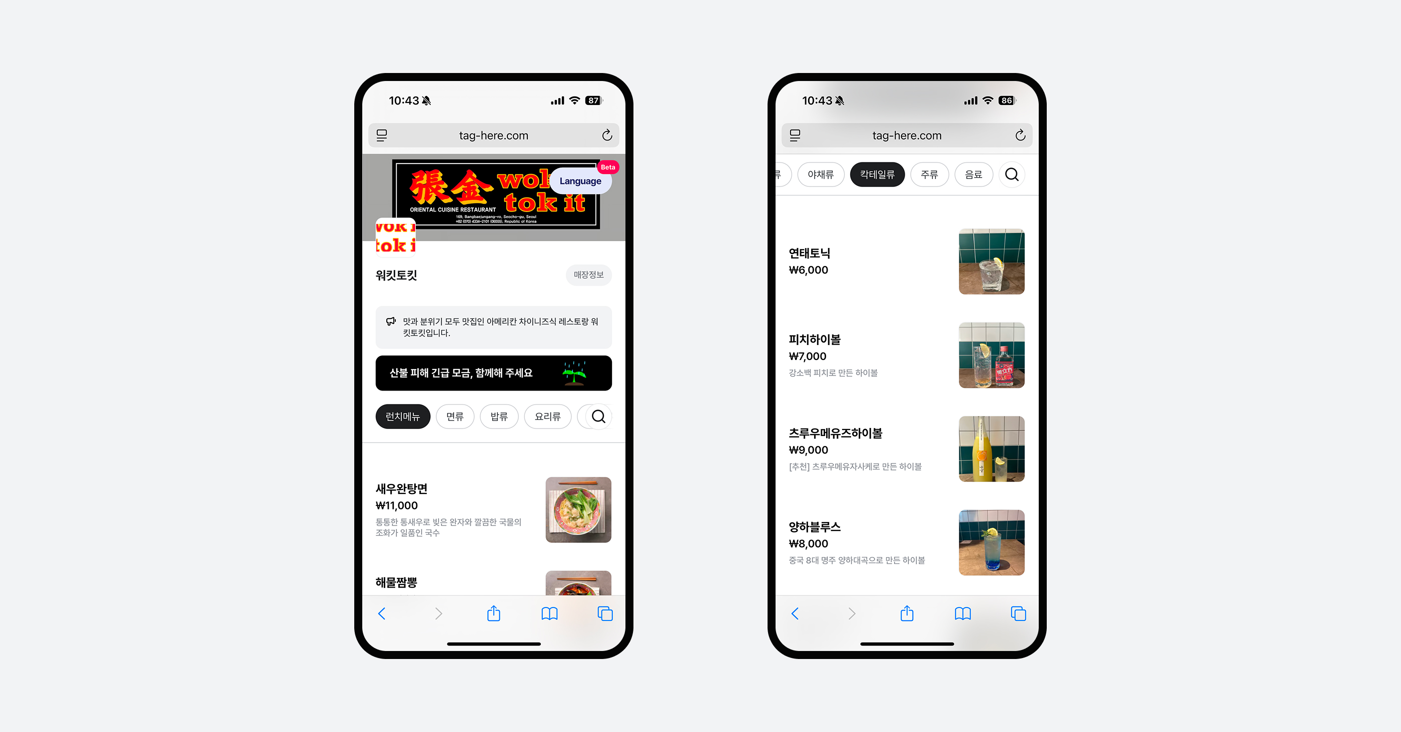 바로 메뉴판 확인과 주문이 가능합니다.