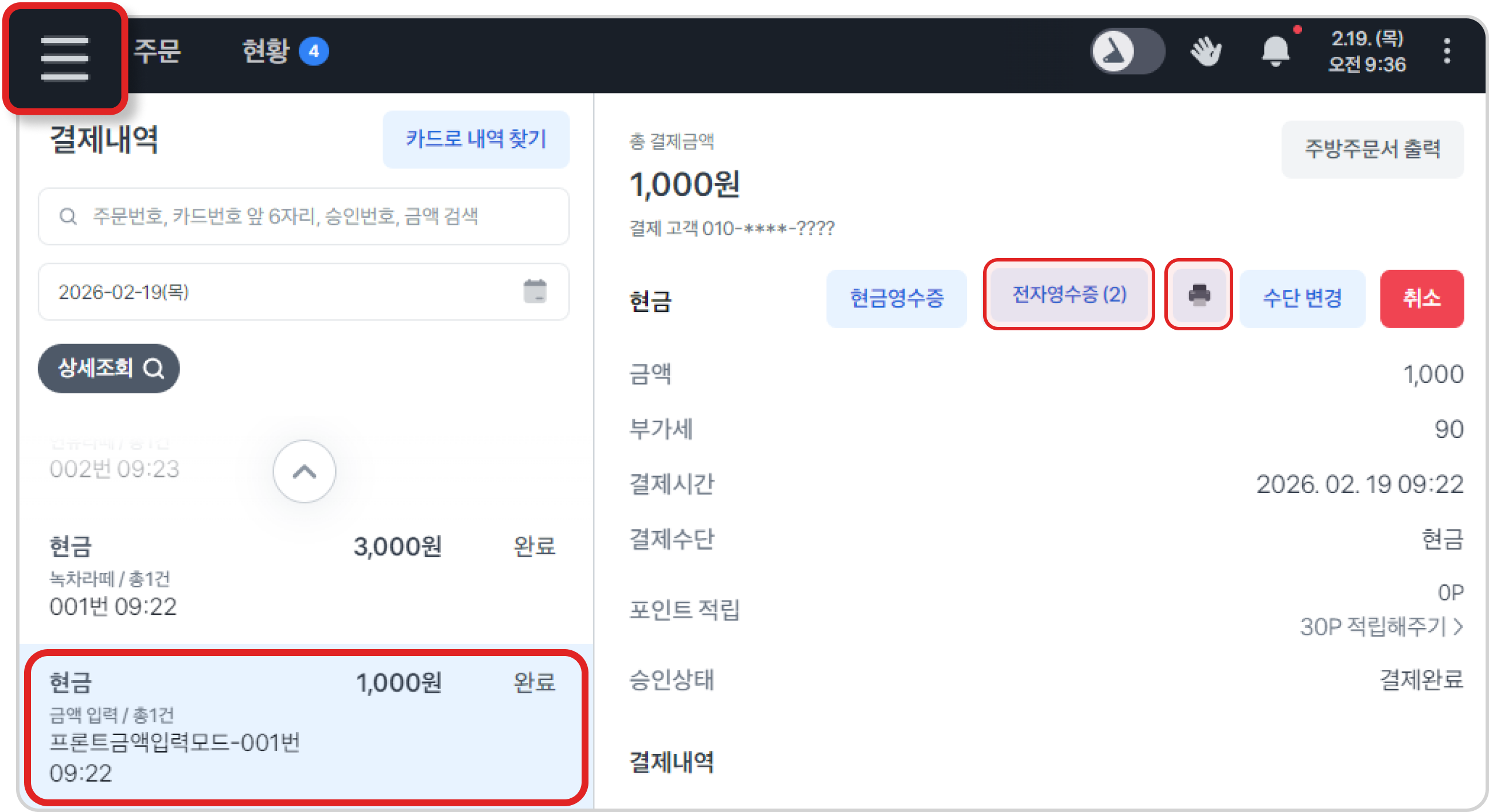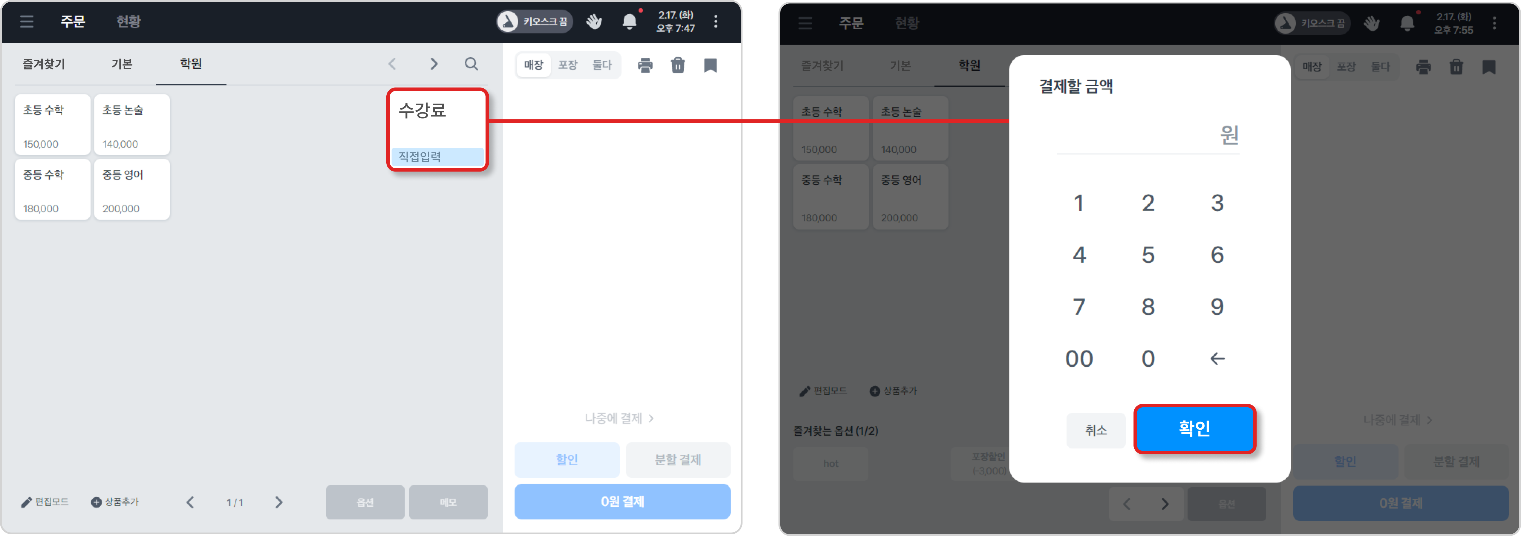 포스 사용이 어려운 비상 상황에서도 결제 가능하도록 준비 된 보조 기능이에요.