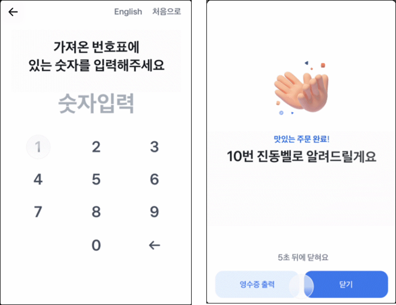 실제 진동벨 기기와의 연동은 지원하지 않고 번호 입력 기능만 제공돼요.