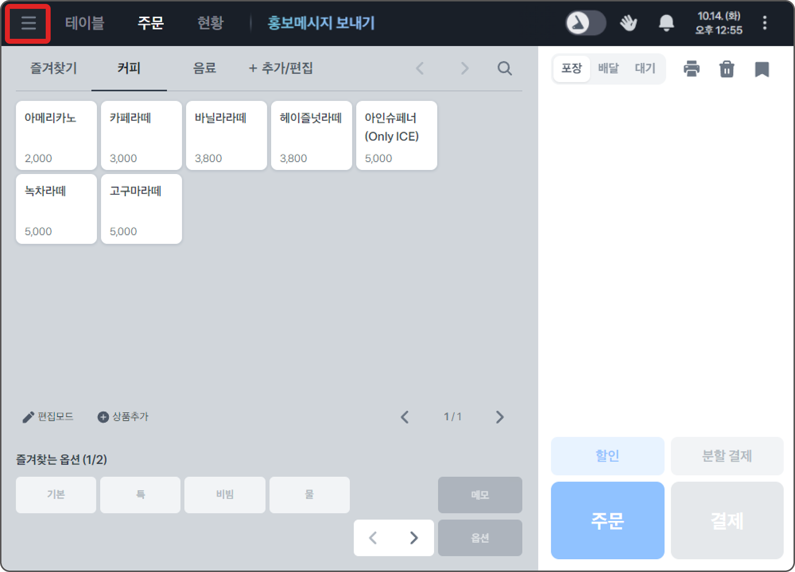 2. 직원이 따로 ‘옵션’ 버튼을 누르지 않아도 되기 때문에, 온도·사이즈처럼 꼭 필요한 옵션에 유용해요.