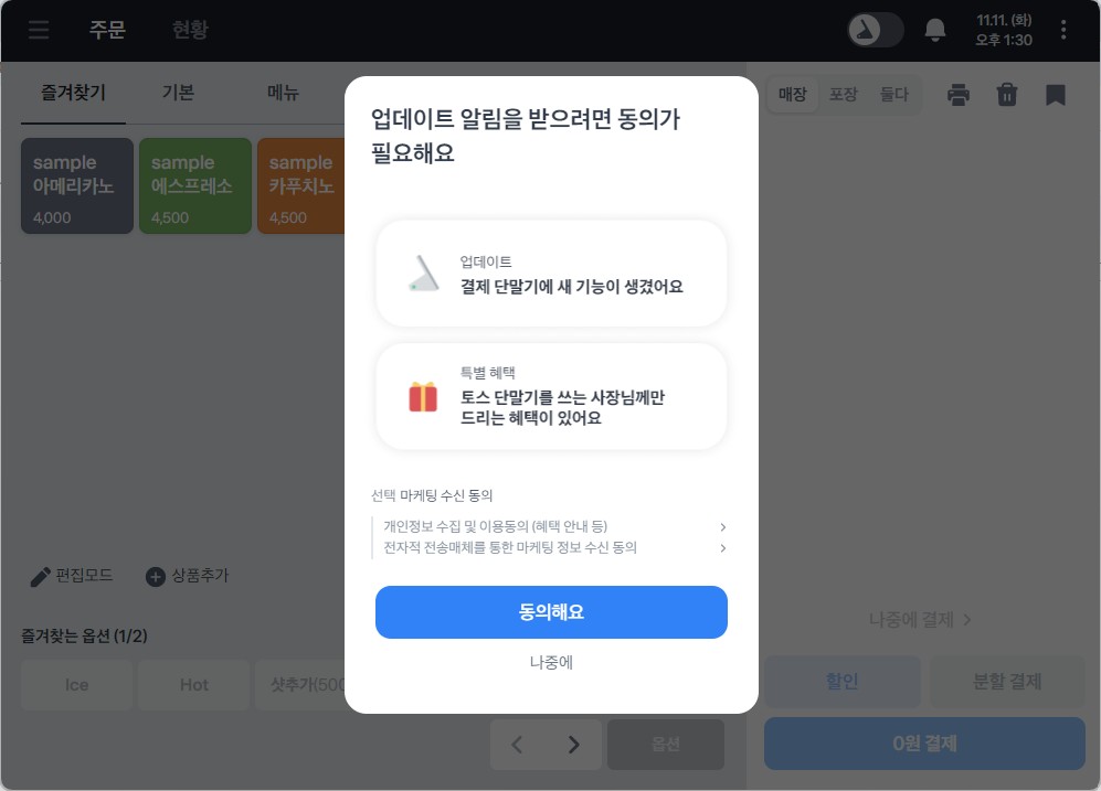 ⚠️ 체험판에 직접 등록한 카테고리, 상품 등은 추후 단말기 구매 후 실사용 환경으로 이관되지 않아 오직 기능을 맛보는 체험용으로만 활용해주세요.