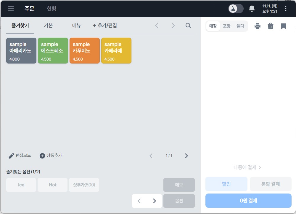 샘플을 눌러 주문 흐름을 먼저 익혀보세요.