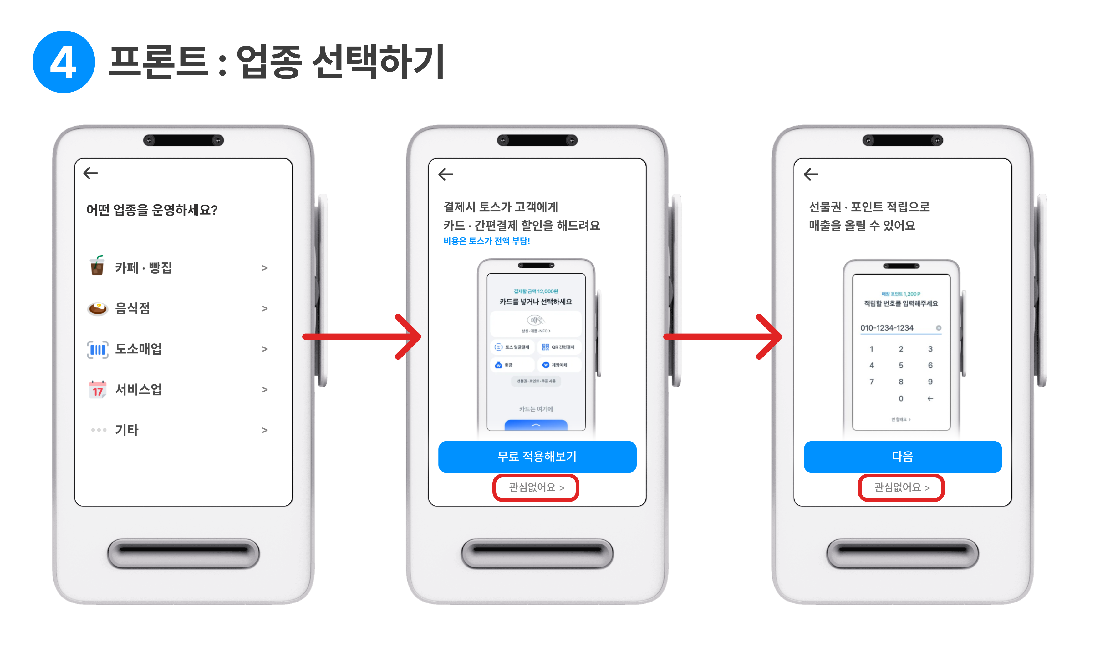 '토스포스 기능 체험 화면'이 나타나면 관심없어요 를 눌러 연결을 진행해 주세요.