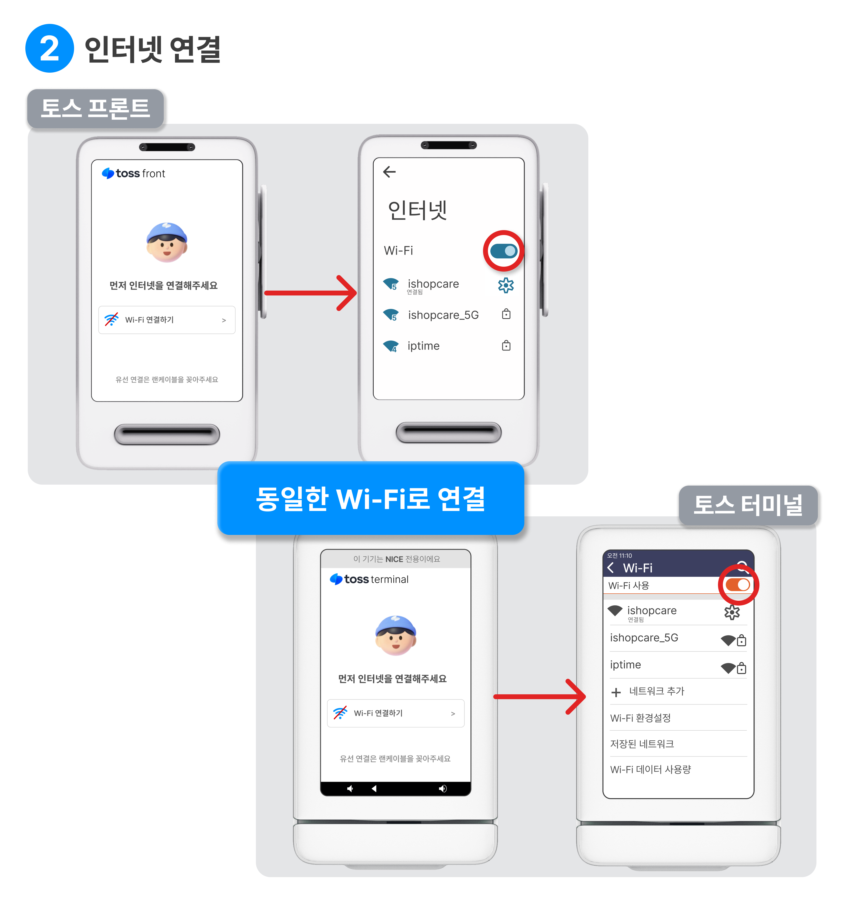( 토스포스 프로그램을 설치 한 기기도 동일한 Wi-Fi로 연결해 주세요 )