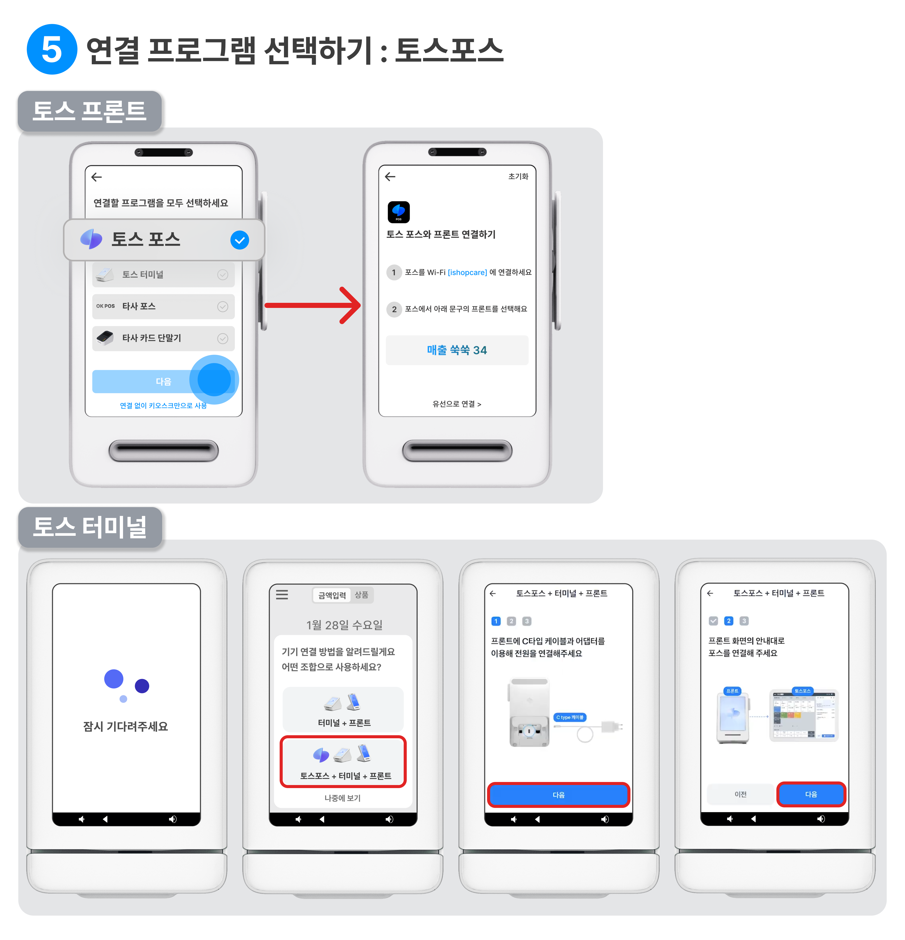 터미널: 토스포스+터미널+프론트 조합 선택 → 다음을 눌러주세요.이제 거의 다 됐어요!
