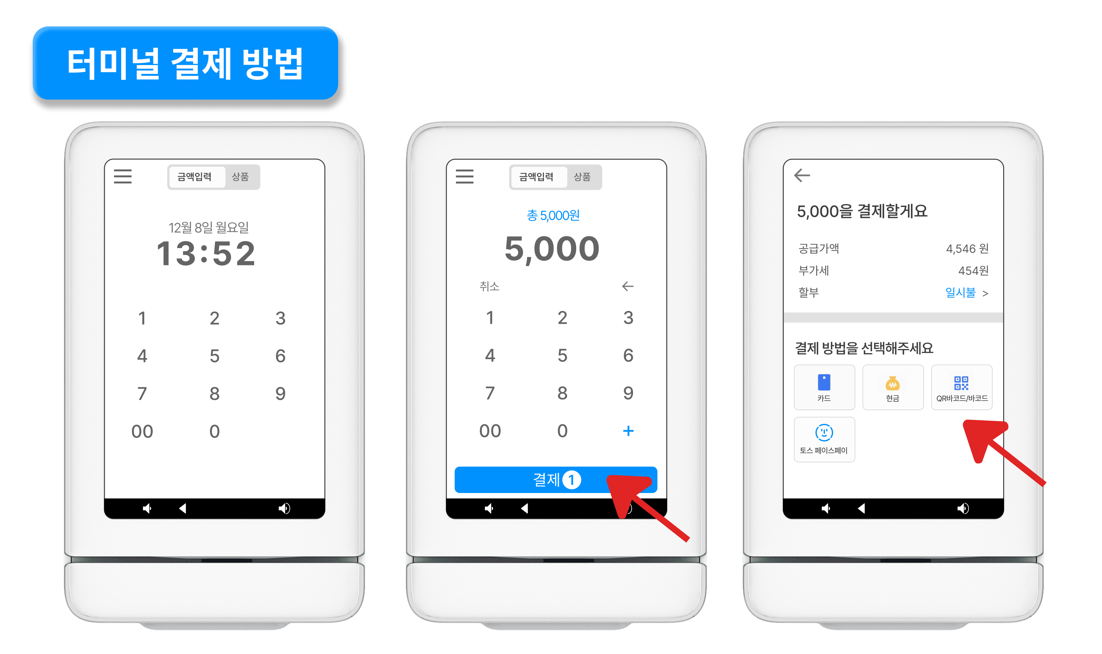 터미널 결제 화면은 아래의 이미지를 참고해 주세요.