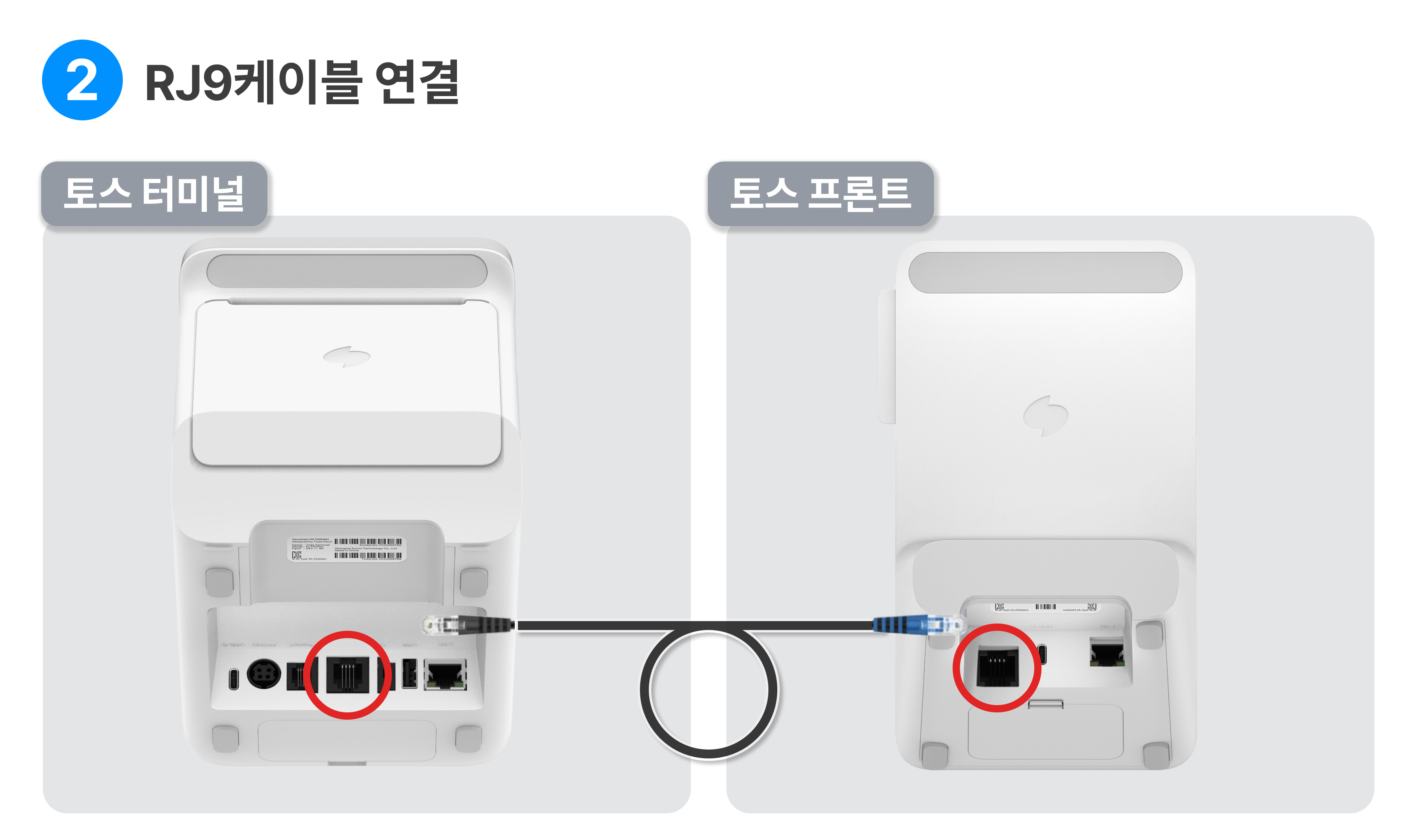 RJ9케이블을 연결해 주세요.( RJ9케이블은 터미널 구성품에서 확인해 주세요 )