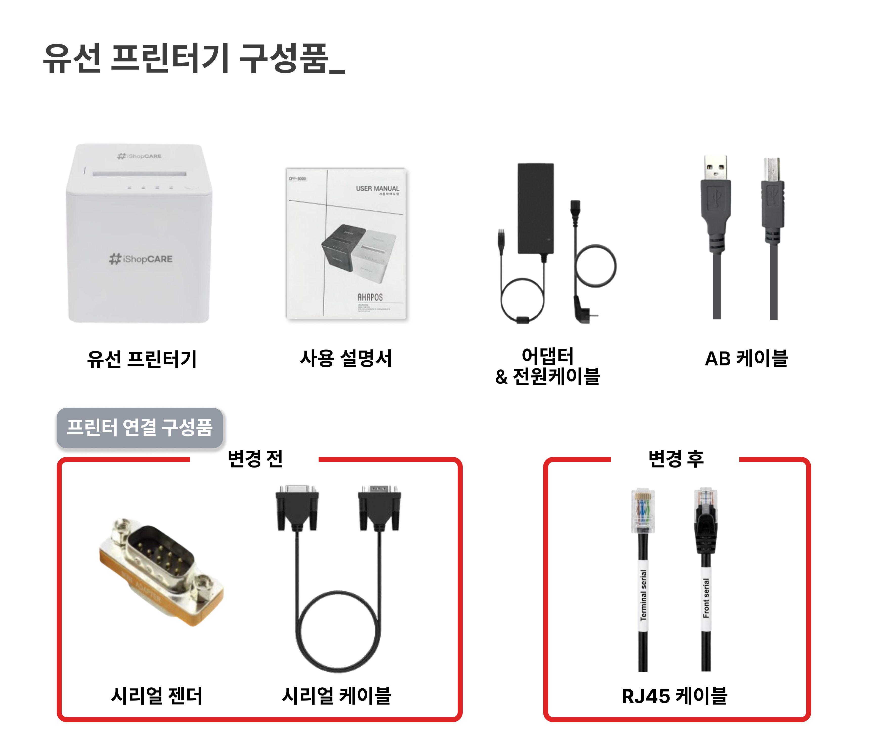 26년 3월 25일부터 유선 프린터기 케이블 구성품이 변경 되었어요.