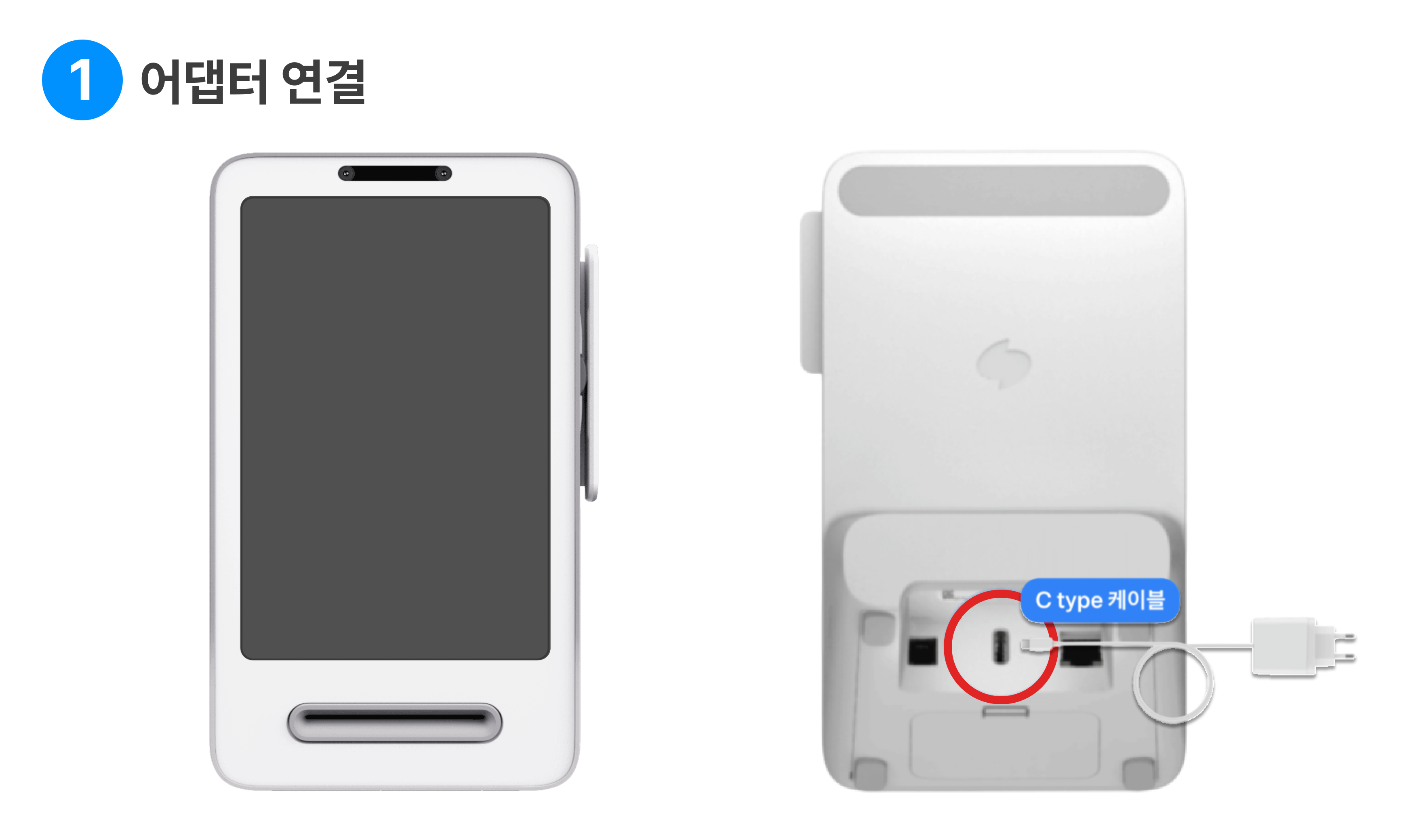 프론트 뒷면 C타입 포트에 전원 어댑터를 연결해 주세요.