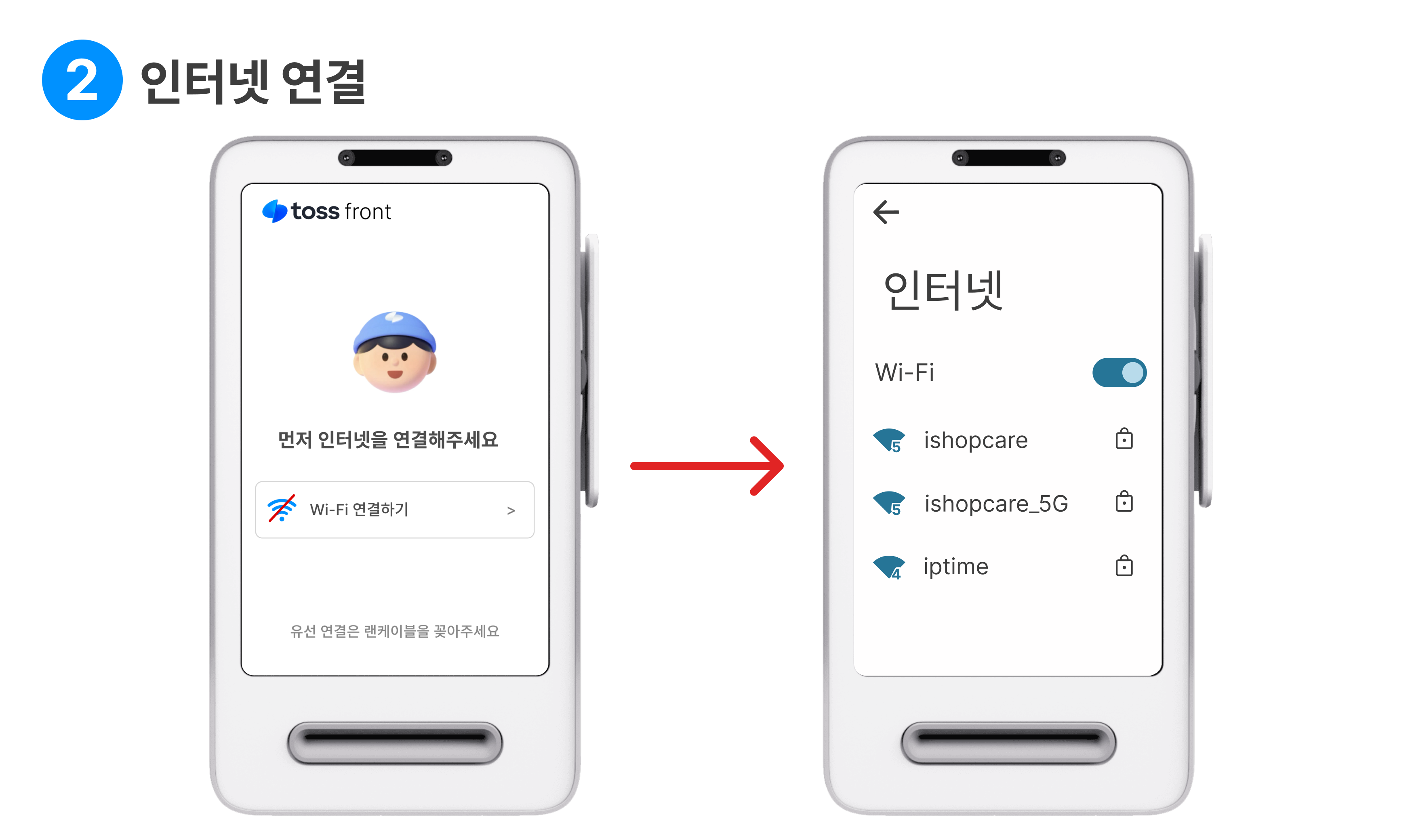 전원이 켜지면 Wi-Fi 연결하기를 눌러 인터넷을 연결해 주세요.