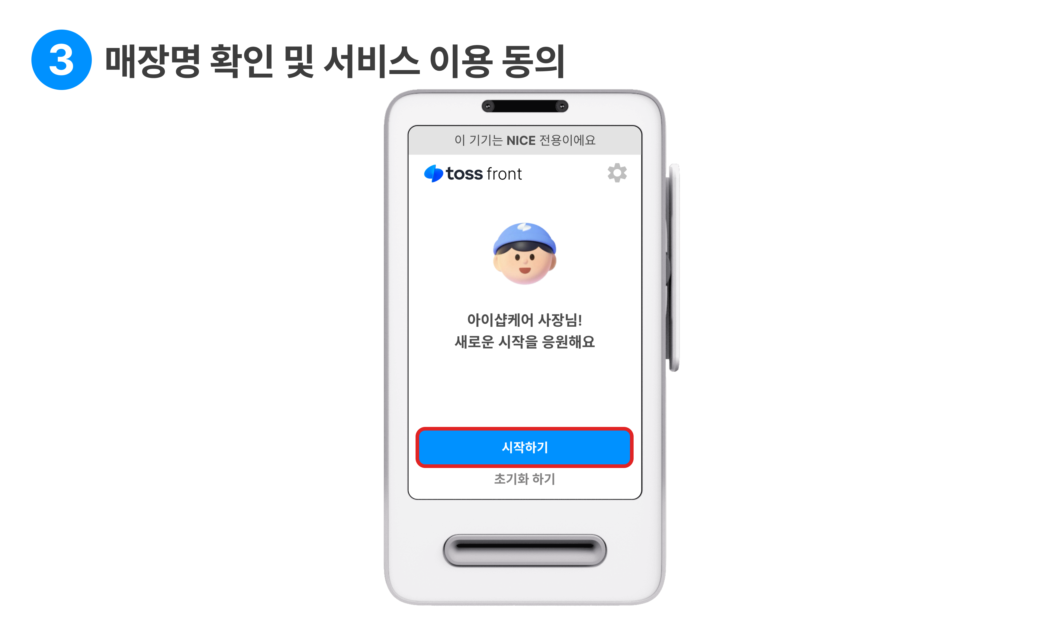 매장명이 맞는지 확인하고, 시작하기를 눌러주세요.