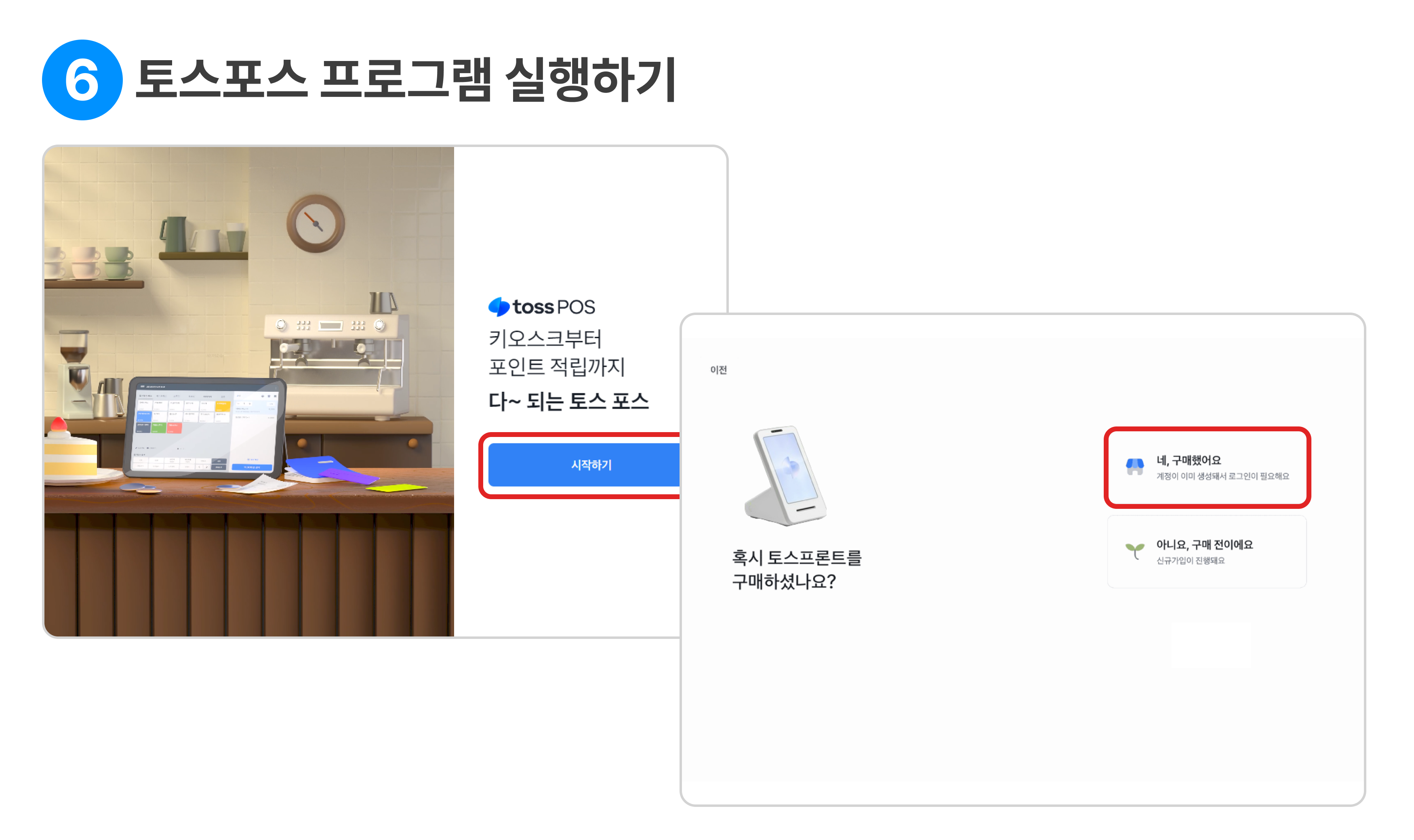 토스포스 프로그램을 실행 후 시작하기 → 네, 구매했어요 를 눌러주세요.