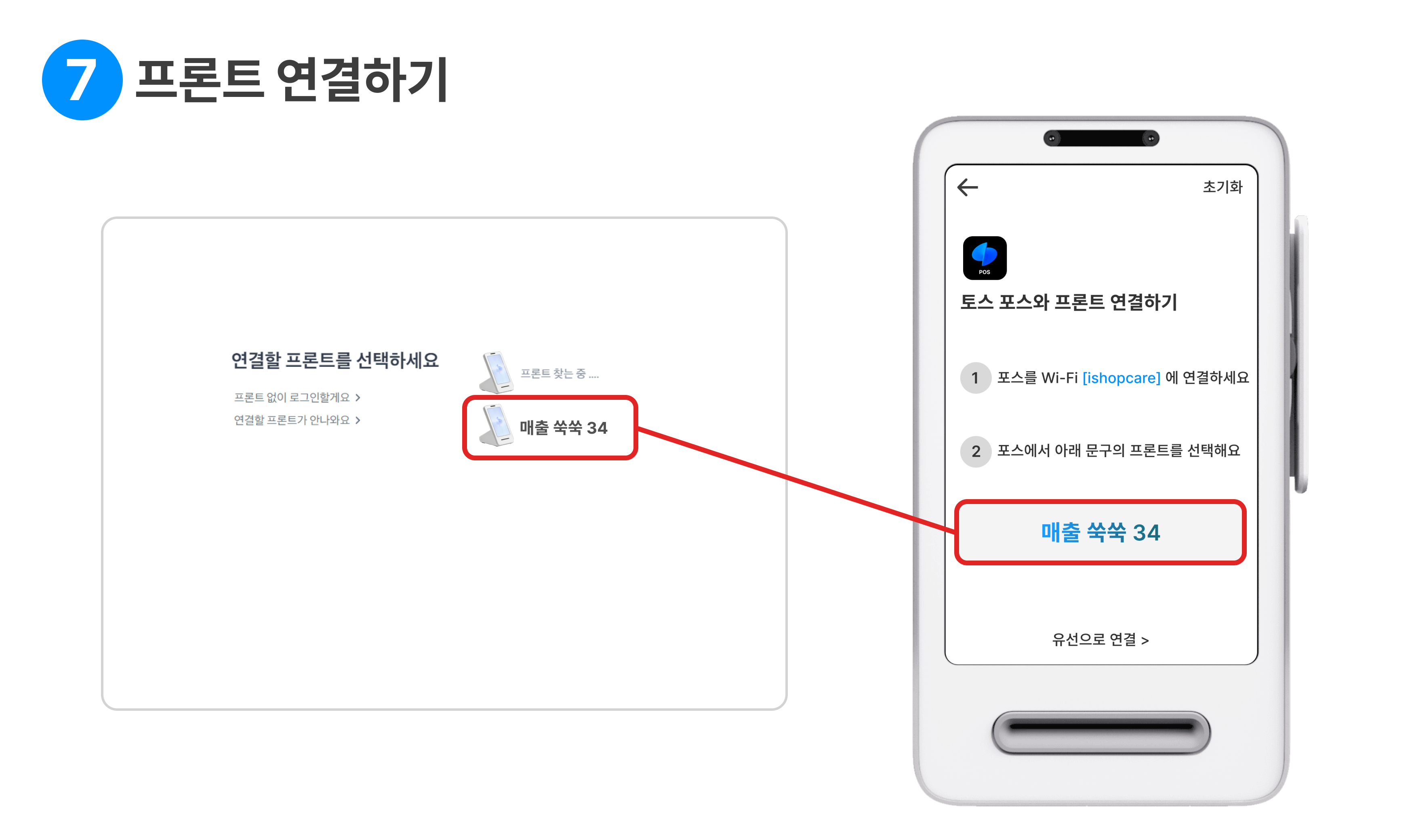 이미지처럼 토스포스에서 프론트에 표시 된 동일한 문구 를 선택해 주세요.