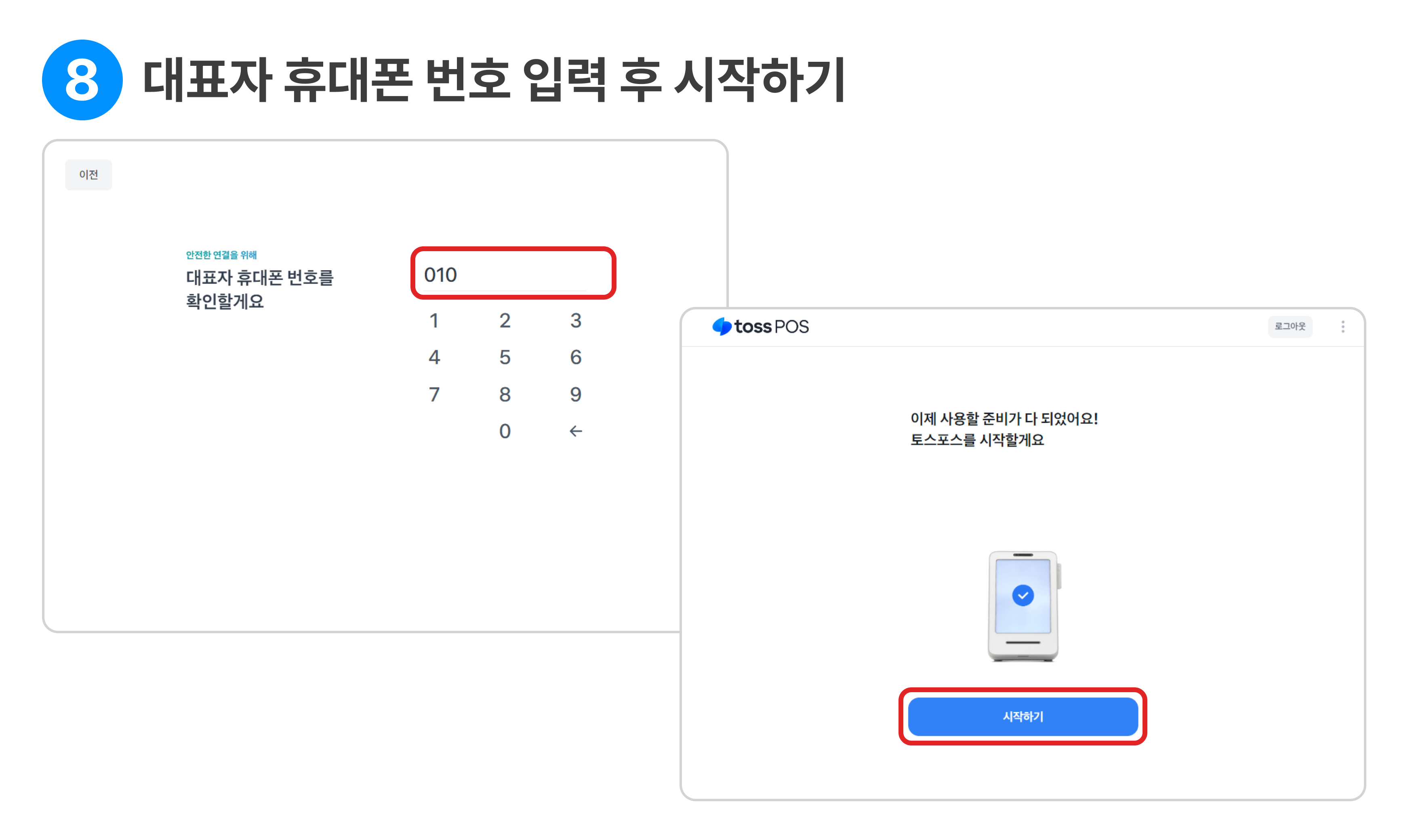 대표님 휴대폰 번호 입력 후 [시작하기] 를 눌러주시면 모든 과정이 끝났어요!