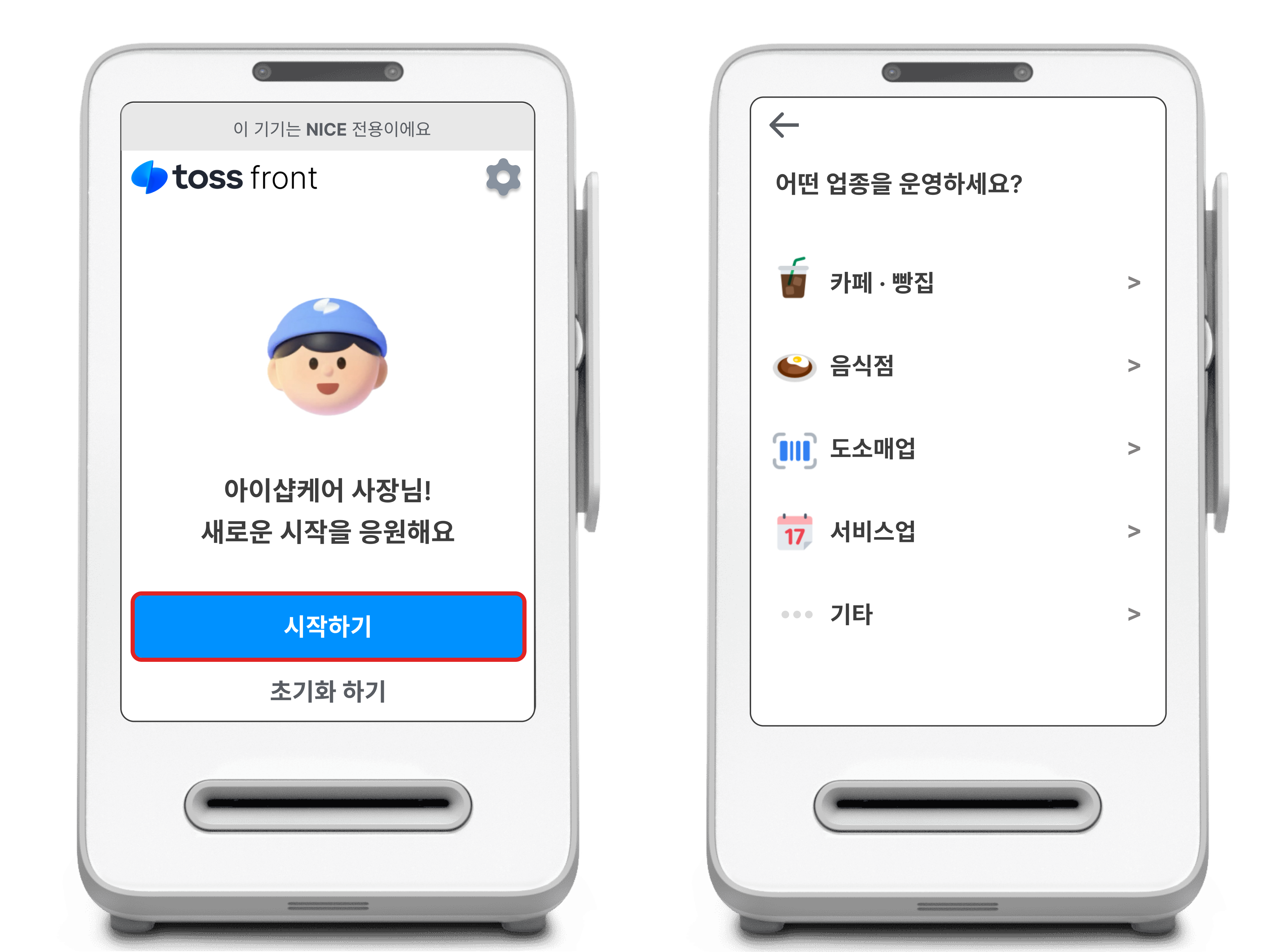 재실행이 완료되면 [시작하기] 버튼 → 운영하시는 업종을 선택해주세요