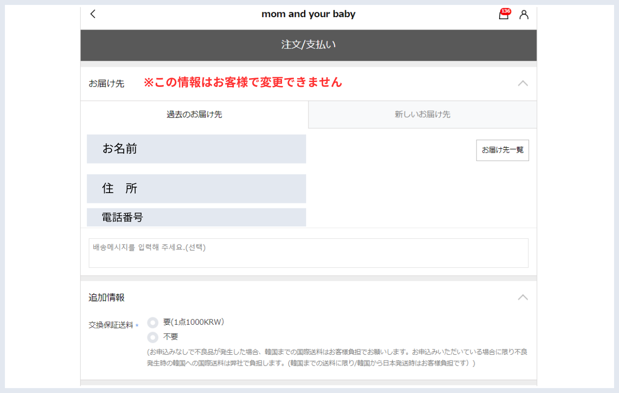 登録済みの住所情報で自動固定されます ※住所変更はフォームから別途ご連絡ください