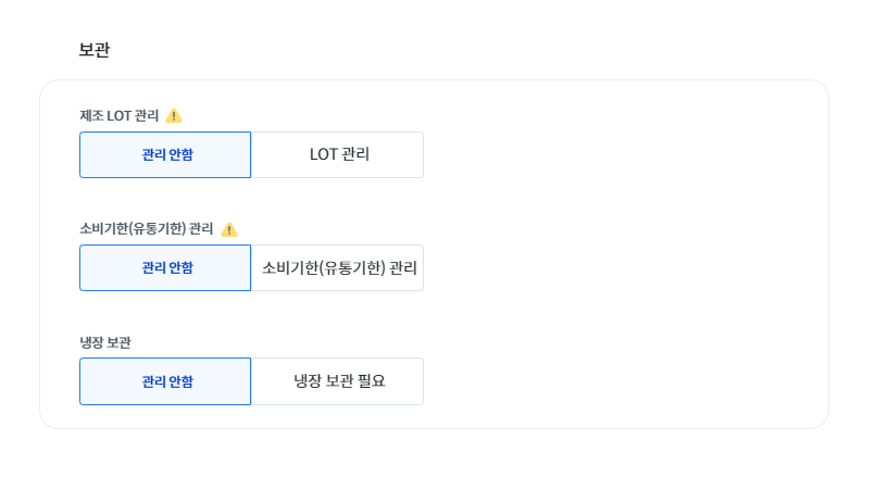 • 유통기한이나 LOT 관리가 필요한 경우 반드시 SKU 등록 시 설정해 주세요.