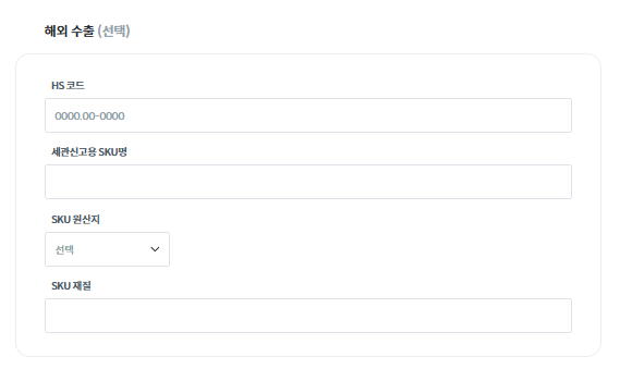 • 존재하지 않는 HS 코드 사용 시 오류가 발생합니다.