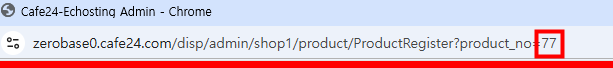 상품 코드: 카페24 상품 목록에 보여지는 url 중 product_no 뒤에 붙은 숫자