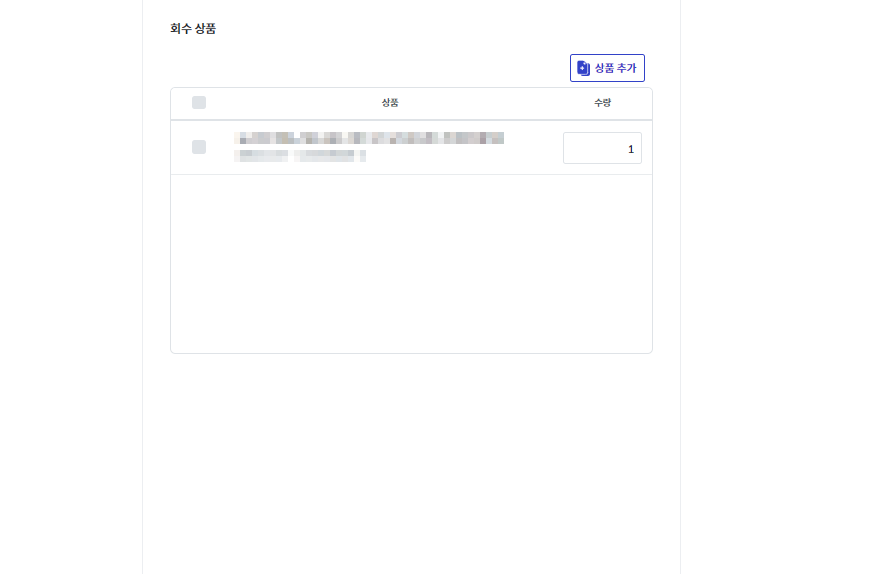 수정이 필요하다면 [상품 추가]를 눌러 회수가 되어야 할 품목을 설정하고, 기존 상품을 체크하여 삭제해 주세요.