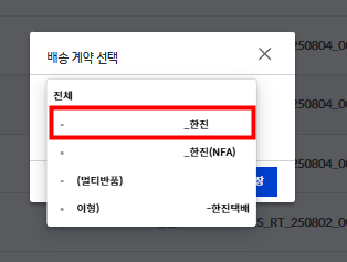 회수 요청 시 배송 계약 선택은 가장 위쪽의 _한진을 선택하여 진행해 주세요.
