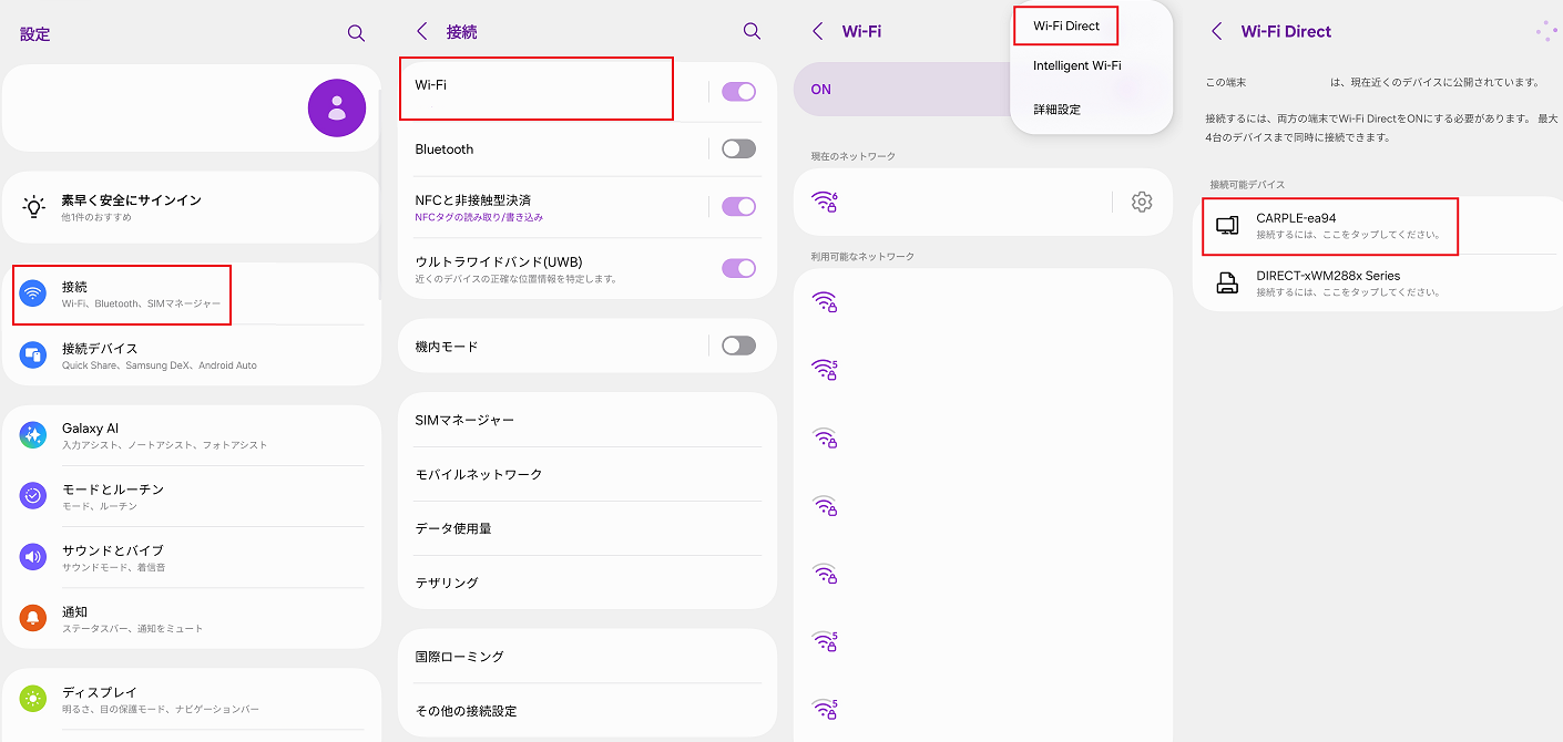 5. メニューから[Wi-Fi Direct]を選択します。