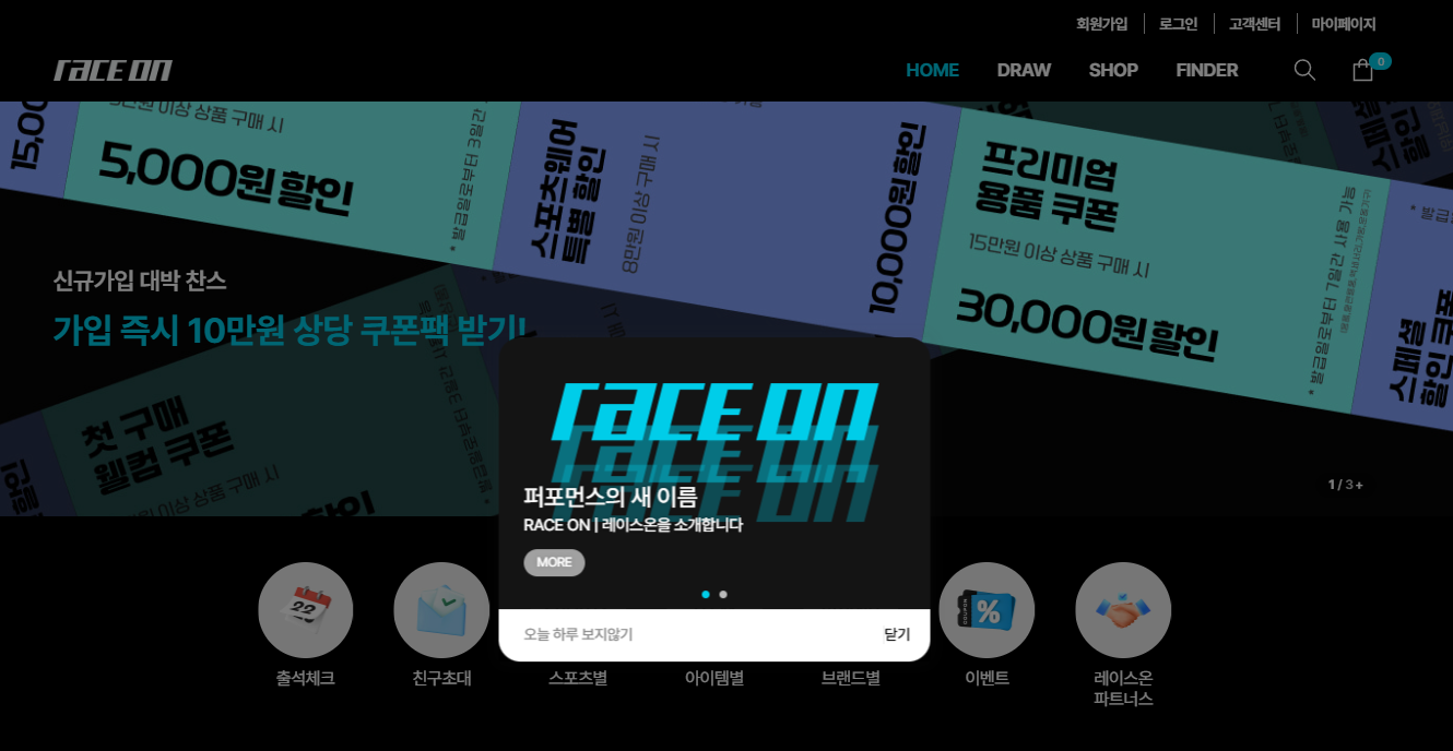 안녕하세요. 퍼포먼스가 레이스온(RACE ON)으로 새롭게 태어났습니다.
