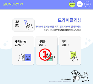 키오스크에서 세탁물 찾기를 선택해 주세요.