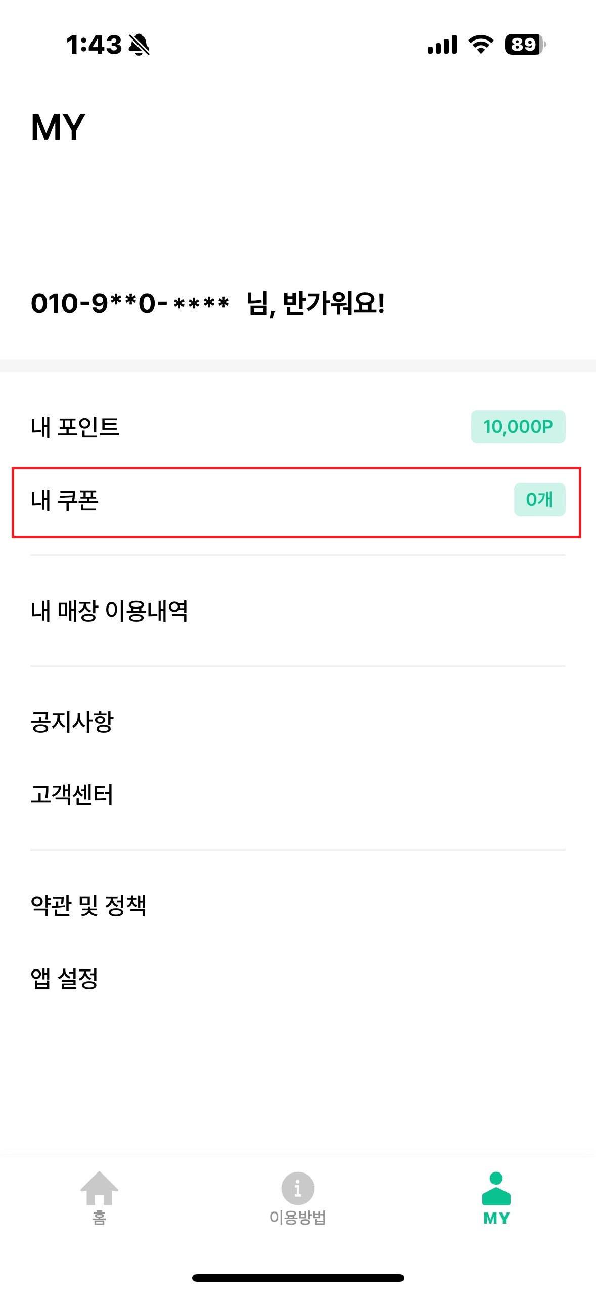 [런드리24 앱 > 나의 이용 내역 > 쿠폰]