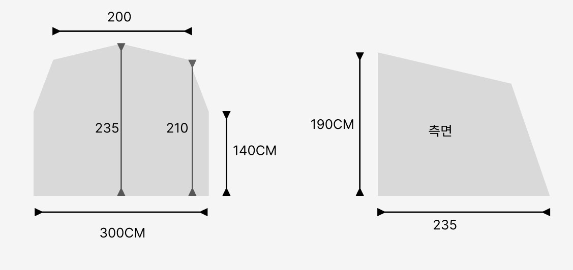 이너텐트 : 가로 300cm x 세로 235cm x 높이 190cm