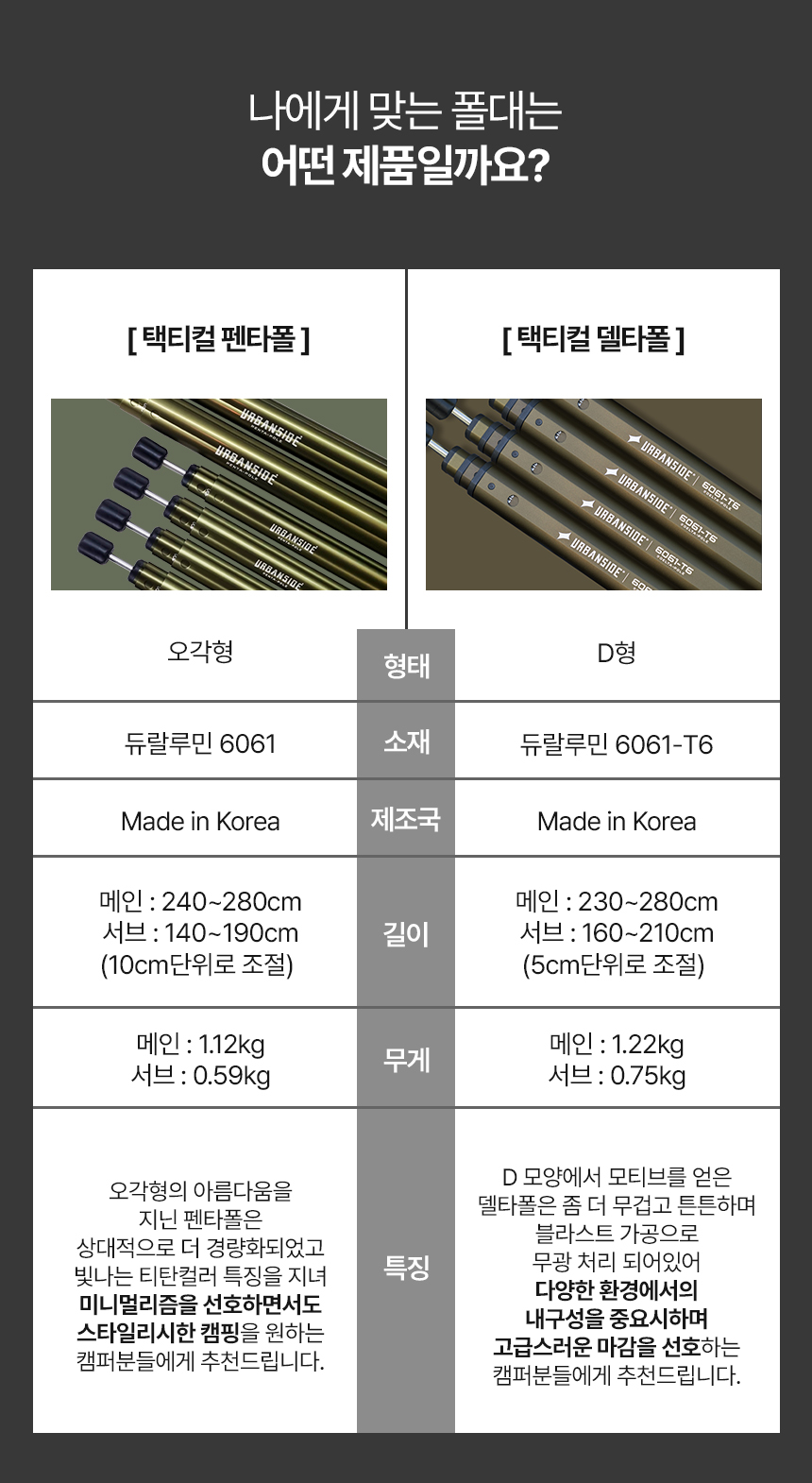 어반사이드 택티컬 듀랄루민 펜타폴 세트