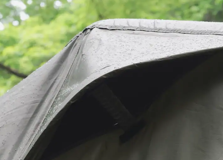 텐트 천장에 맺힌 습기가 빗방울에 떨어지면서 물이 새는 것처럼 보일 수 있지만,