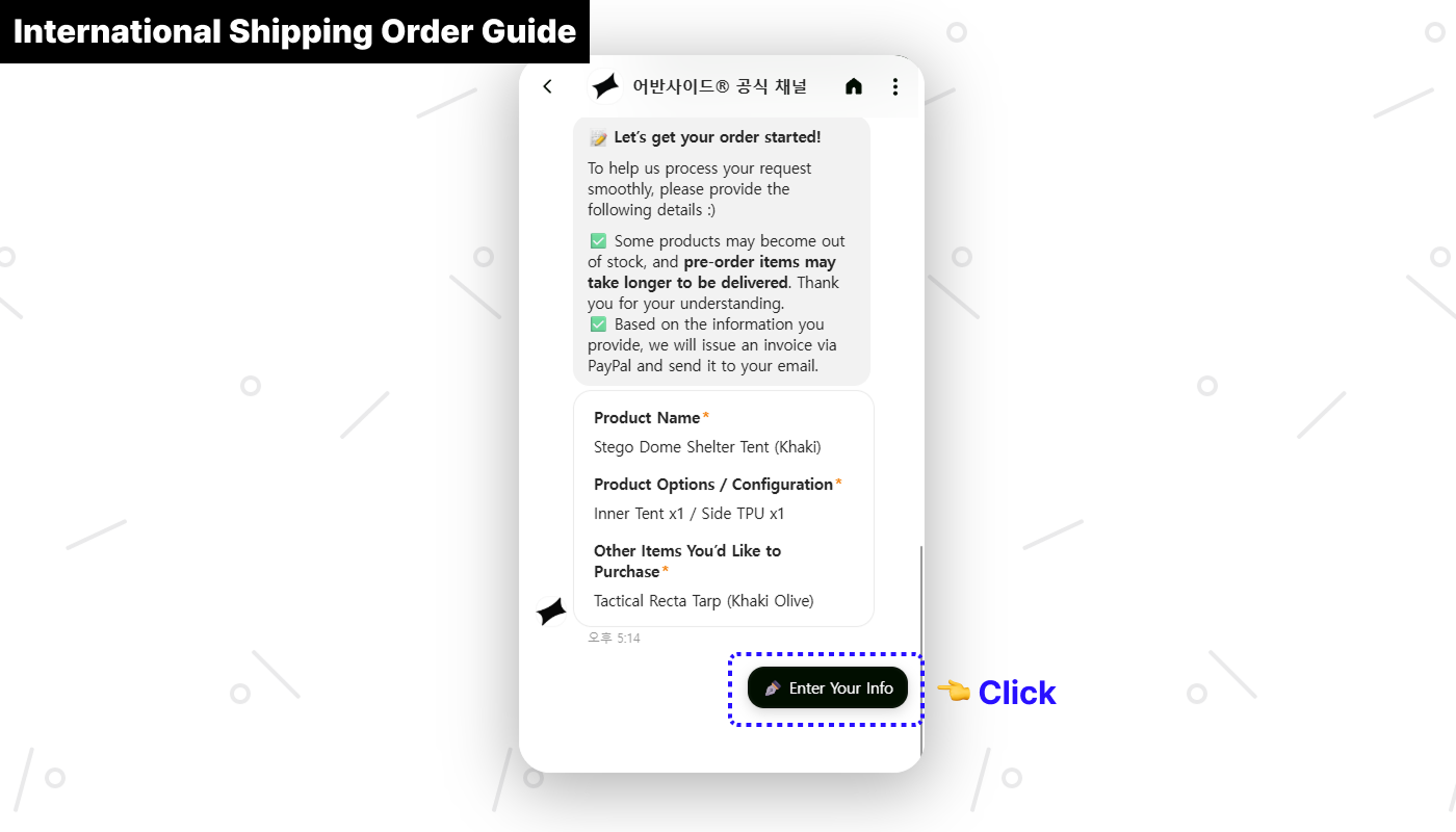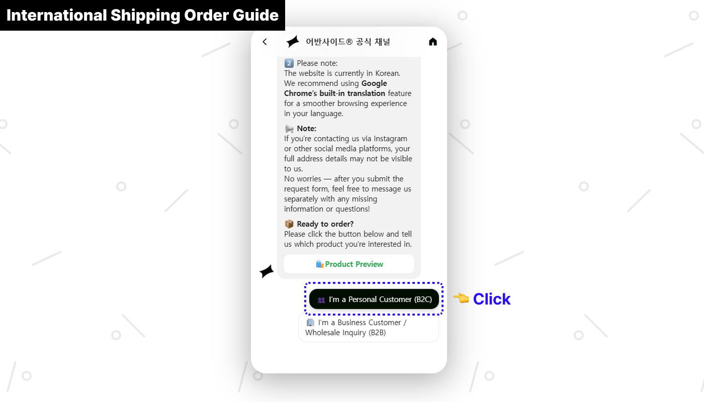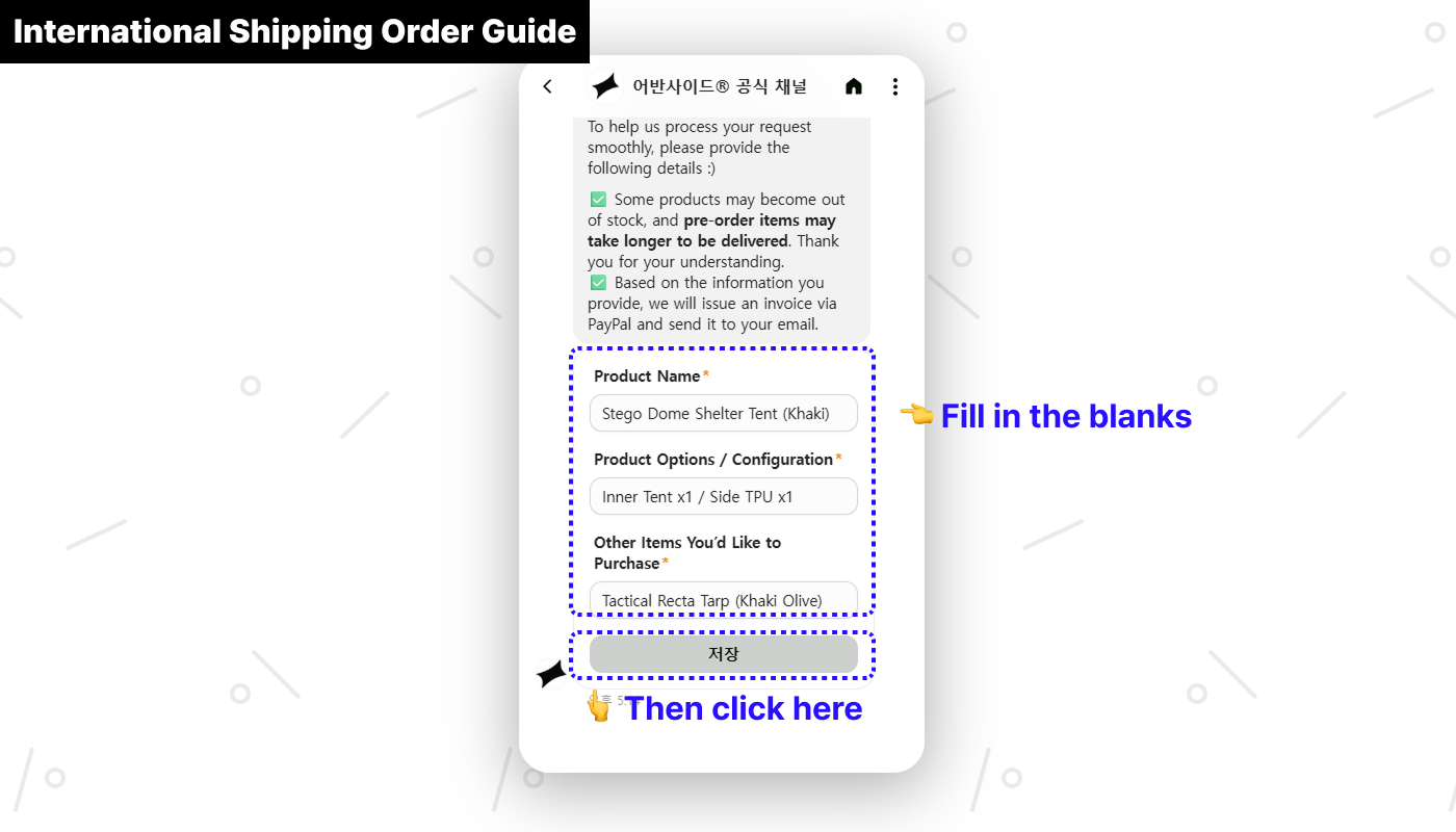 해외 배송은 [여기] 에서 접수할 수 있어요.아래 안내를 따라 진행해 주세요.