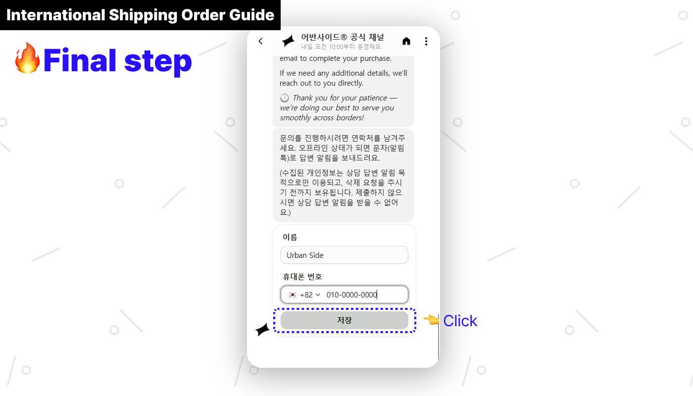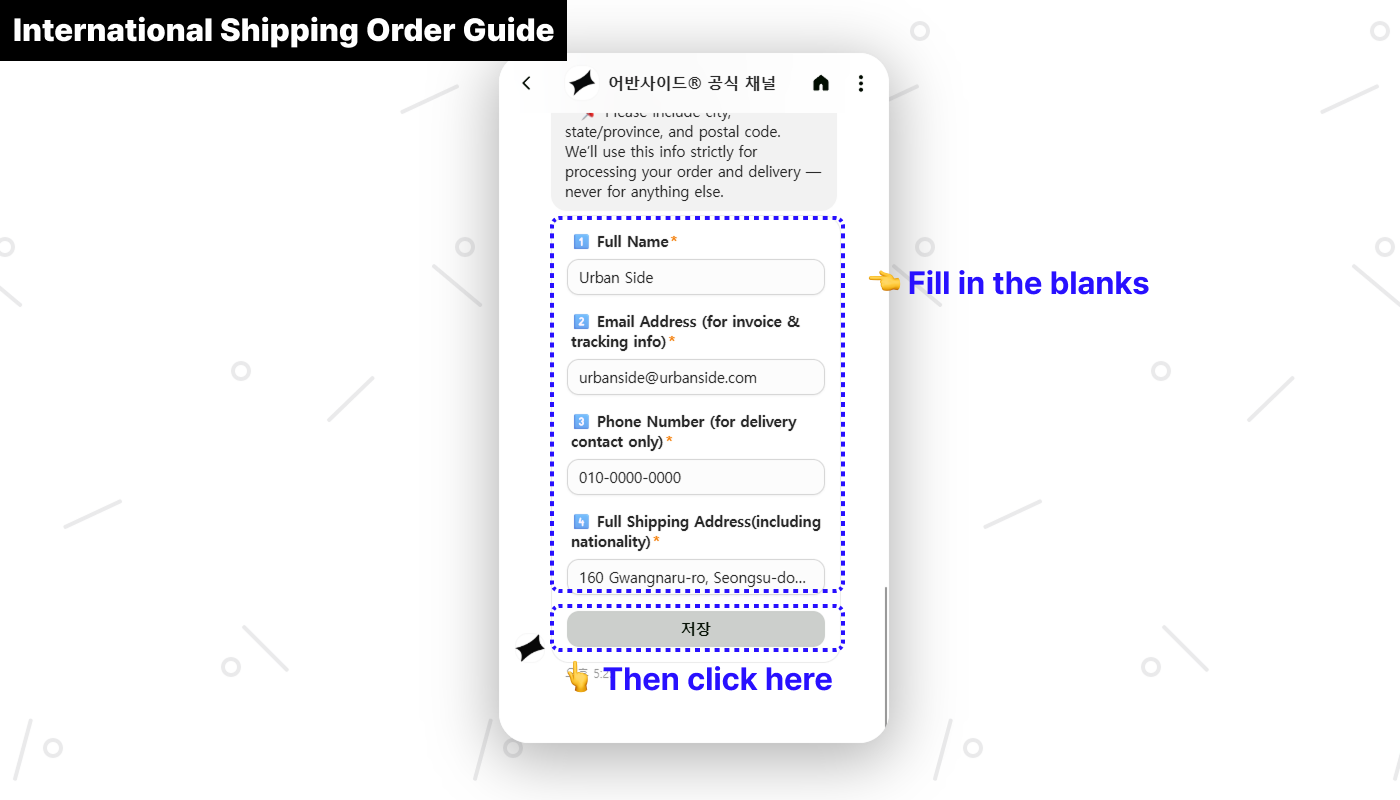 Full Shipping Address : 국가/우편번호 포함 전체 주소