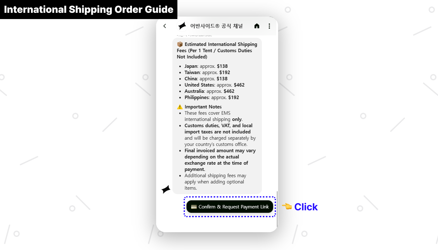 확인 후 Confirm & Request Payment Link 버튼을 눌러주세요.