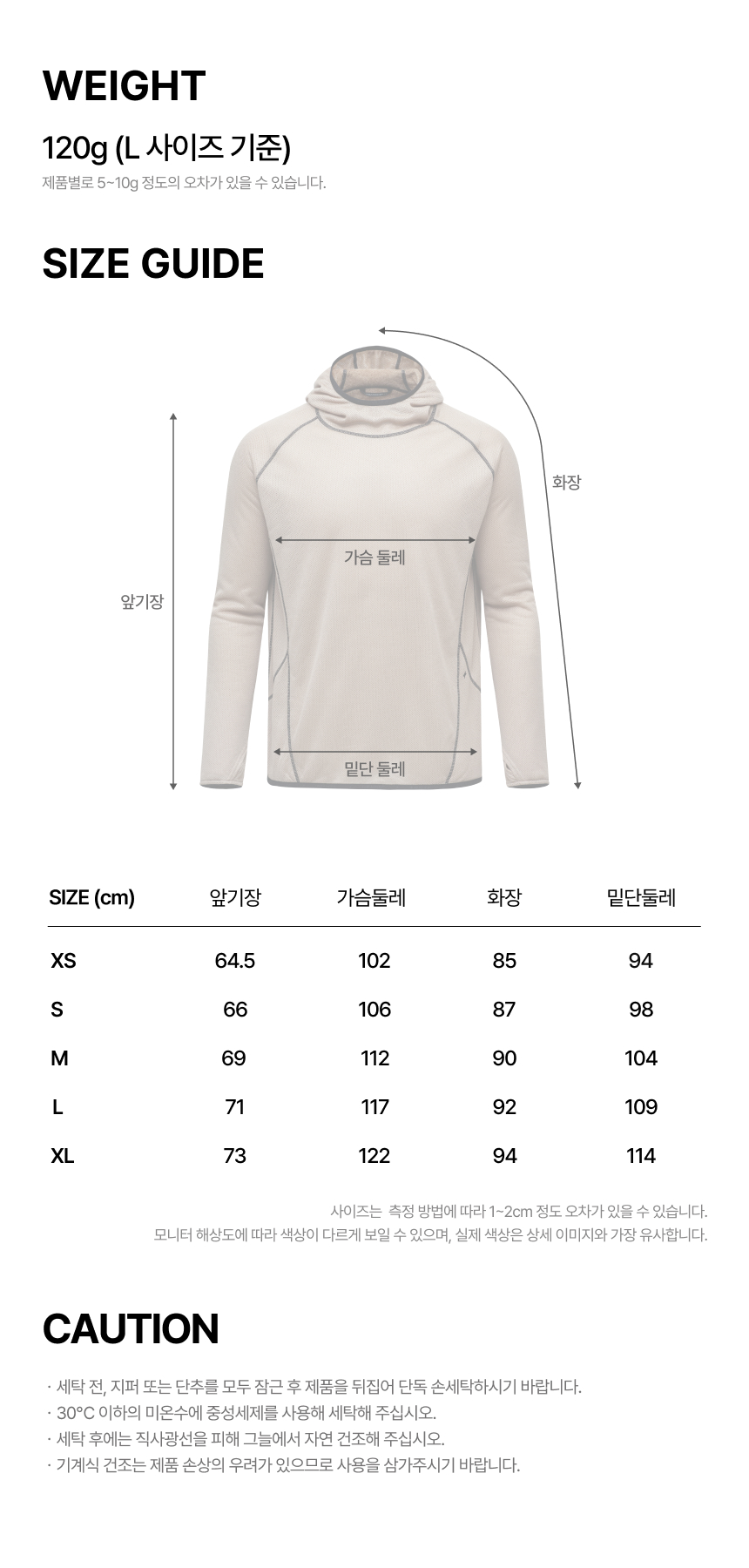 미스릴 옥타 에어 베이스 레이어 후디 사이즈 가이드