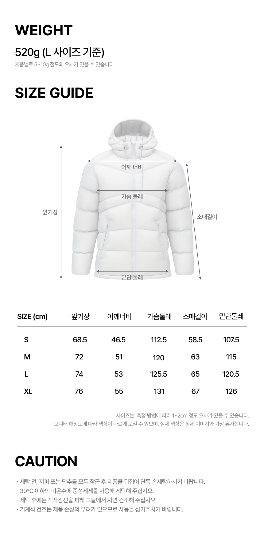 물세탁 | 저온 단독 세탁, 다운 전용 세제 사용 |