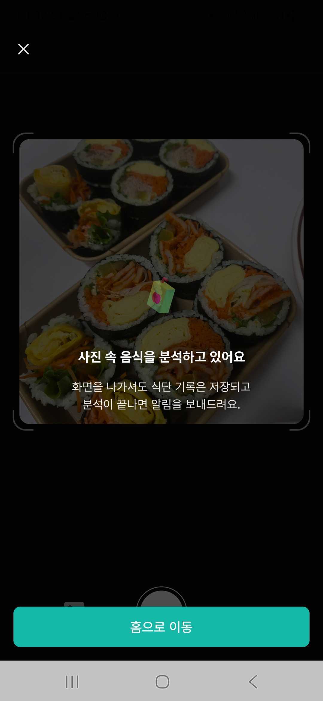 사진을 올리면 "사진 속 음식을 분석하고 있어요"라는 안내가 나타나요.