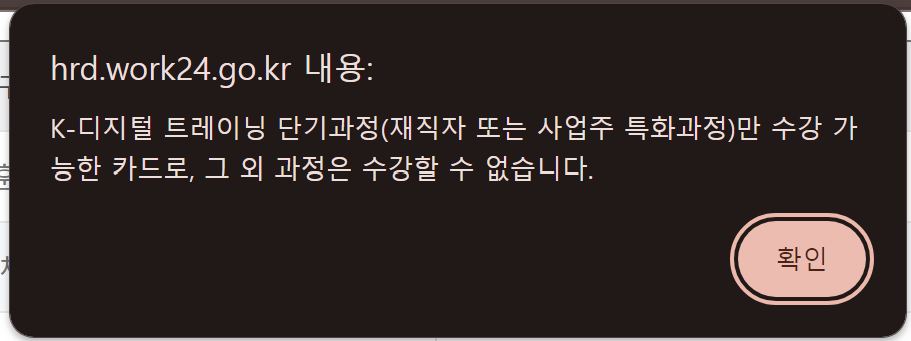 K-디지털 트레이닝(KDT) 단기 과정만 수강 가능한 카드