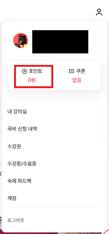 포인트는 결제수단의 일부이며, 유료 강의 결제 시 현금처럼 사용 가능