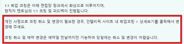 취업 코칭에 대한 당일 취소 및 변경은 어려워요.