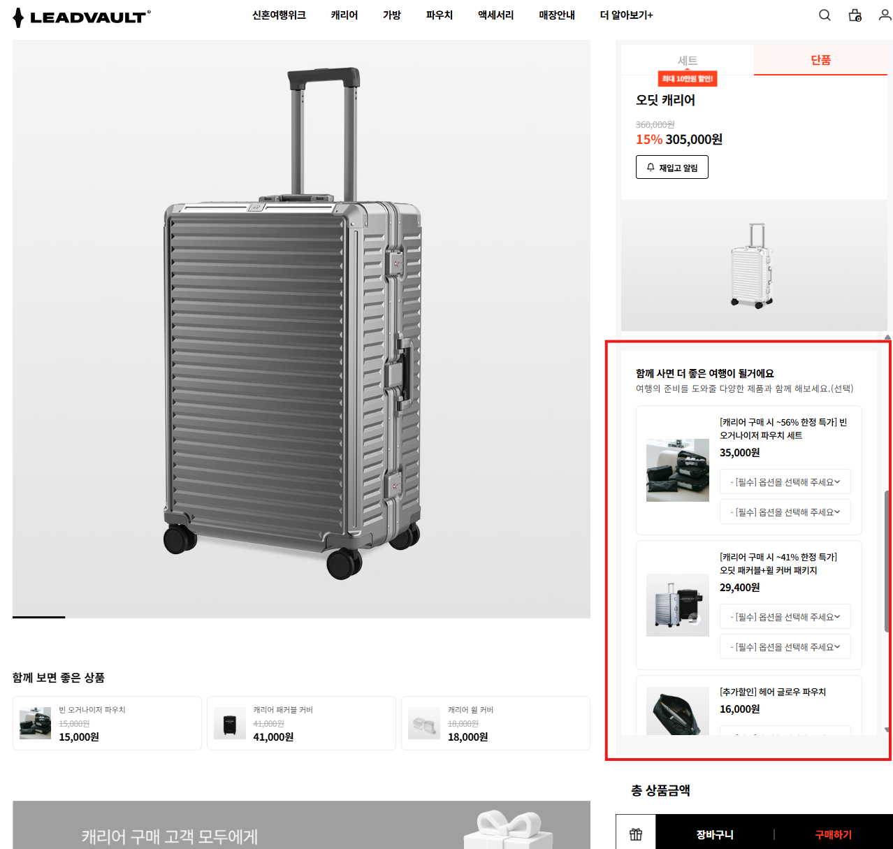캐리어 + 구성품 함께 구매 시 추가 할인 혜택 적용