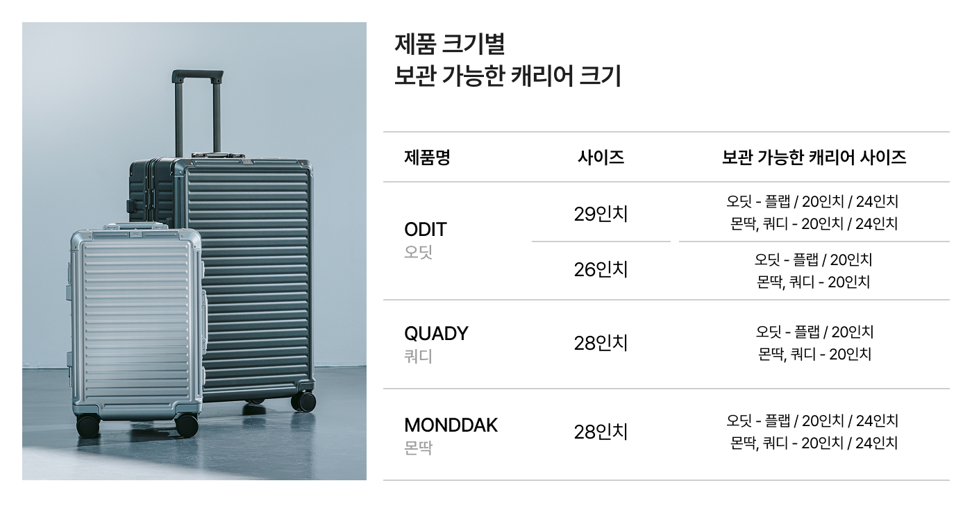 사이즈 | -20인치 -가로 50 x 깊이 25 x 높이 40=115(cm) 오딧 29인치 안에 플랩 수납 가능 (24,20인치 안에는 불가능) |