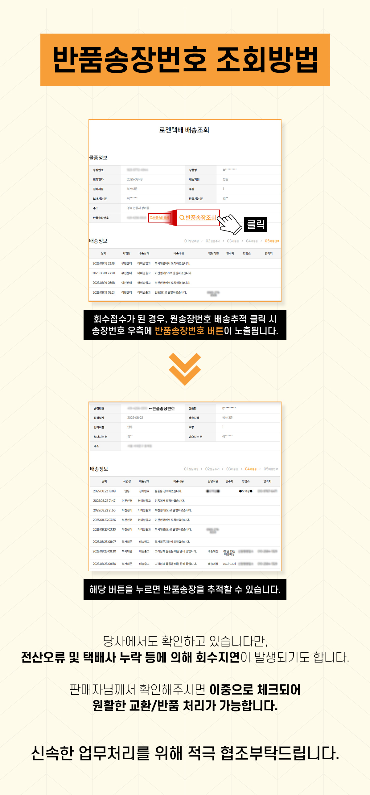 회수접수 후 반품완료 까지는 주문자께서 추적 확인해주셔야 합니다.