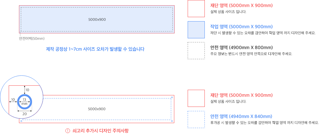 쇠고리/타공 위치가 자동 적용되므로 디자인 파일에 쇠고리/타공 위치를 표시하지 마세요!(위치를 표시한 경우 디자인과 같이 출력되며, 이로 인한 A/S는 불가합니다.)