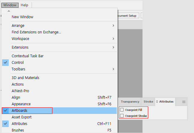 Windows - Attributes 창에서 Overprint Fill 체크해제 [한글판] Ctrl+F11 모든 체크박스 해제